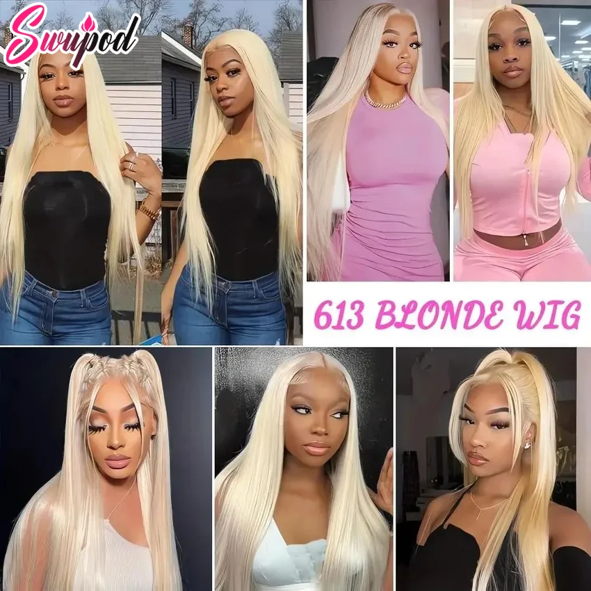 100% Human Hair Full Lace 613 Blonde Straight 13x4 13x6 Hd Lace Frontal Wig 20 3