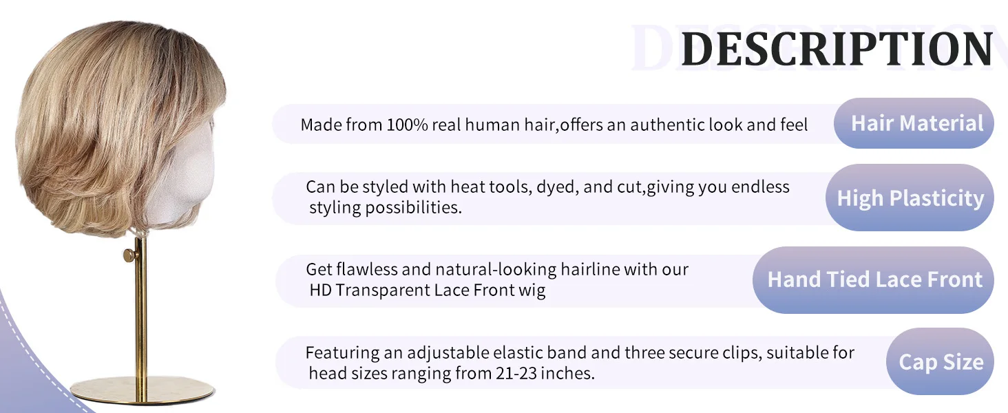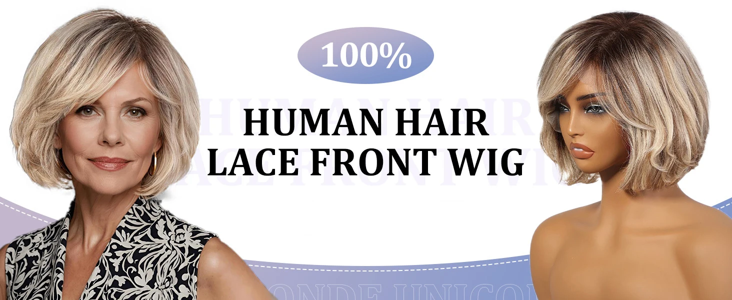 12 In Lace Front Human Hair Wigs for Women Blonde Balayage Short Layered Wavy Bo