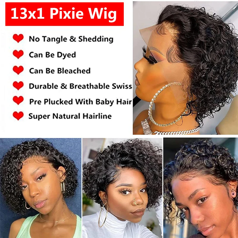 Item Name: Short Curly Lace Front Wig Human Hair Pixie Cut Wigs
