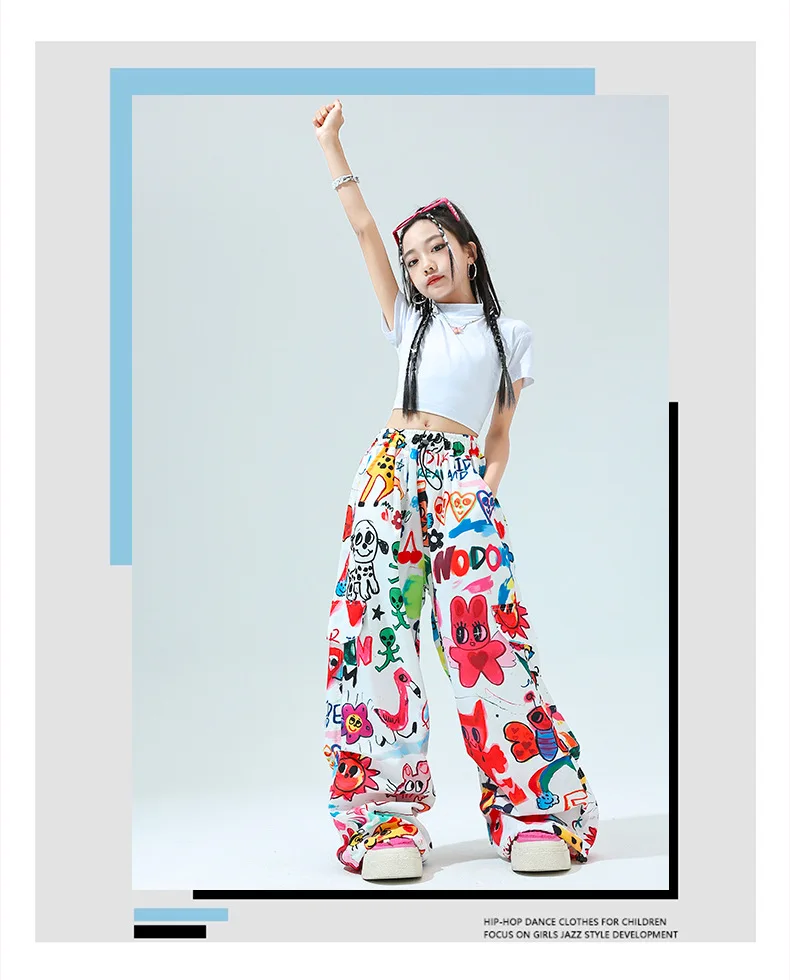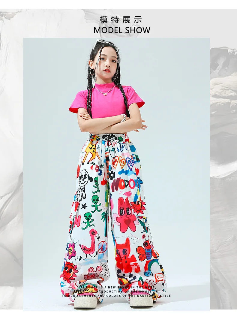 【 15-70kg 】girl pink crop top fashion girl dopamine pants jazz dance costume