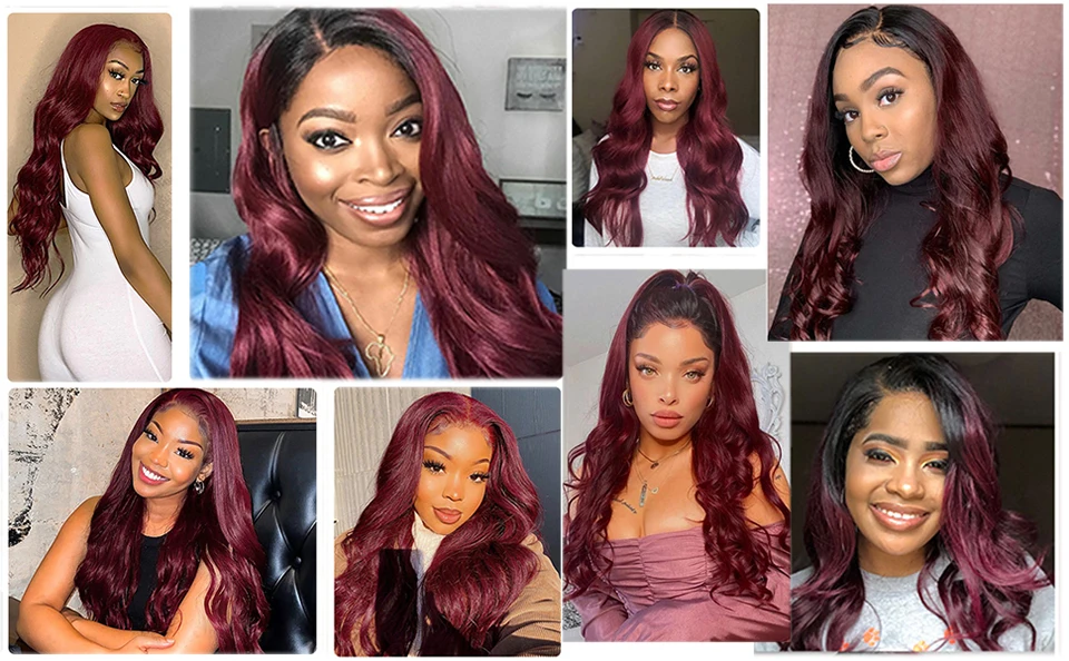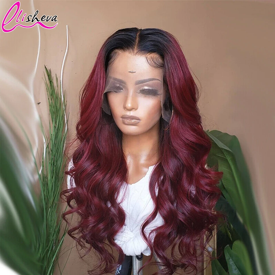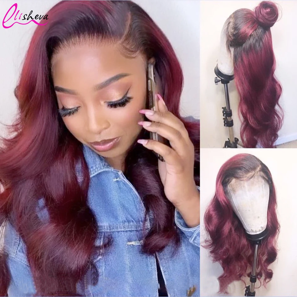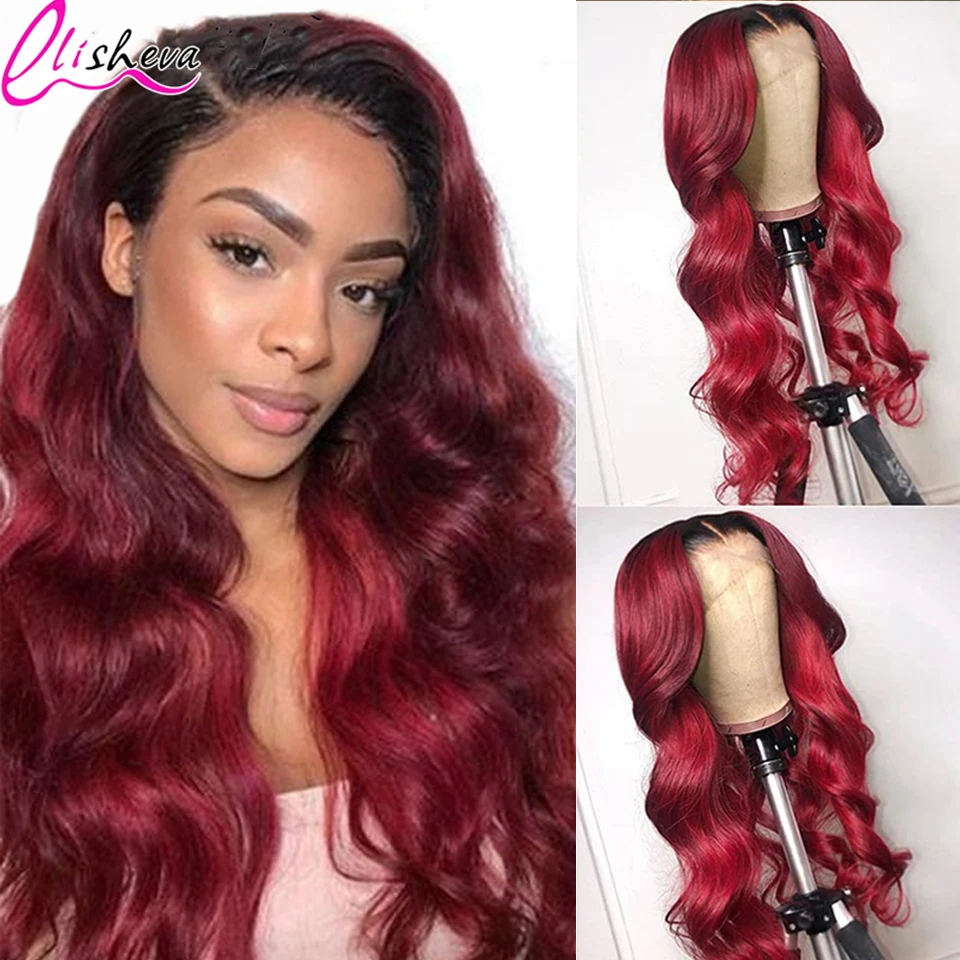 1B 99J Ombre Lace Front Wigs 13x4 Body Wave Lace Front Wig For Women Pre Plucked Human Hair Wig With Baby Hair Body Wave Wig