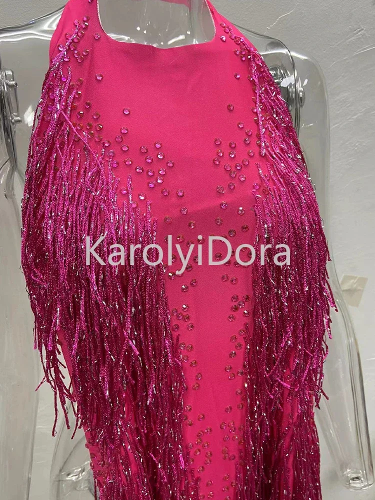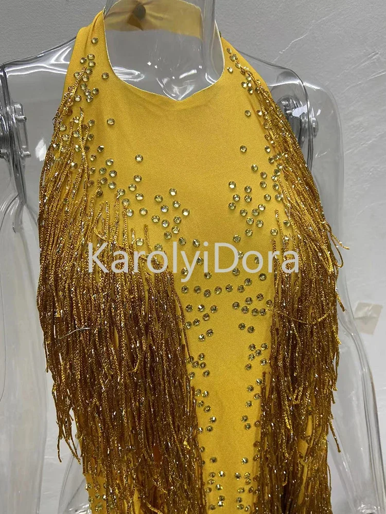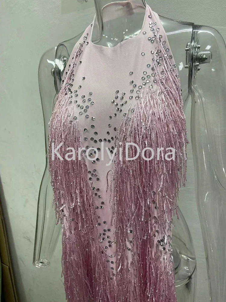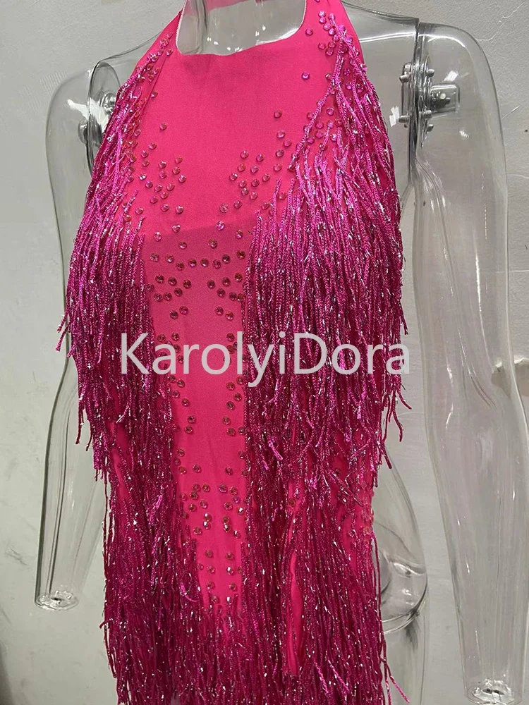 2024 Sparkly Rhinestones Fringes Bodysuit Women Nightclub Outfit Glisten Dance C