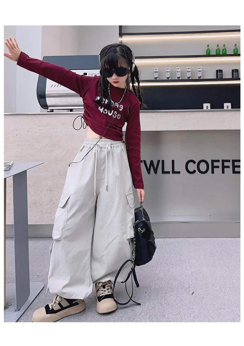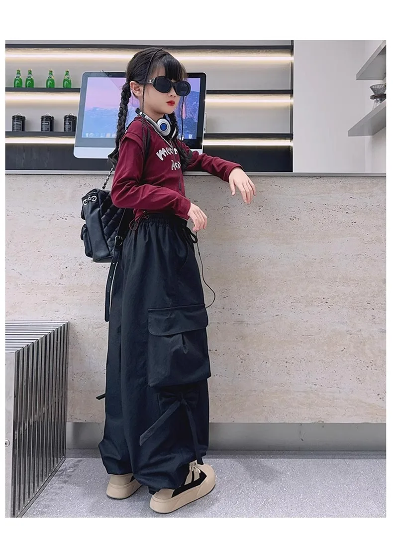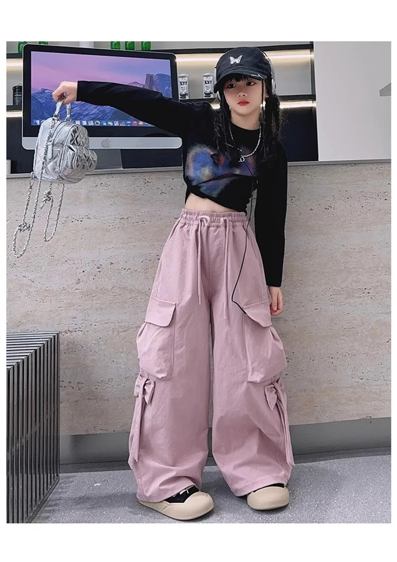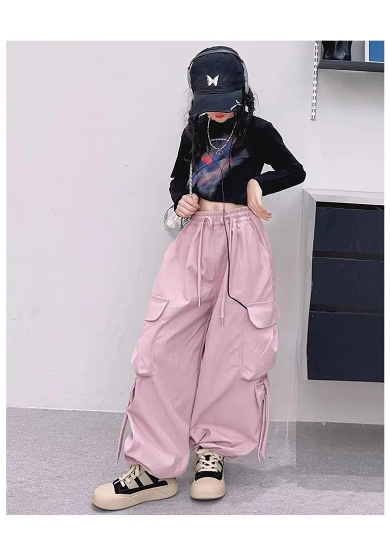2025 1pc summer teens tracksuit hip hop dancer Girls cloth bottom loose long wid