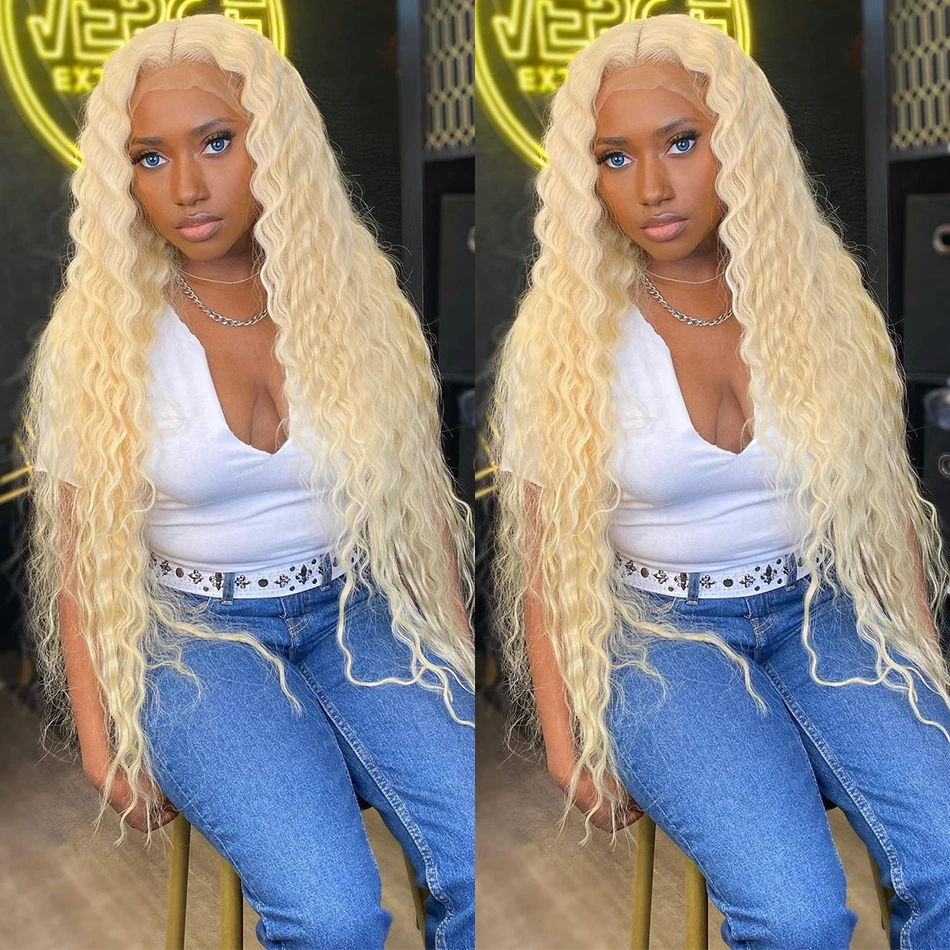 300% 613 Hd Lace Frontal Wig 13x6 Blonde Water Curly Human Hair Wig Remy Color 1