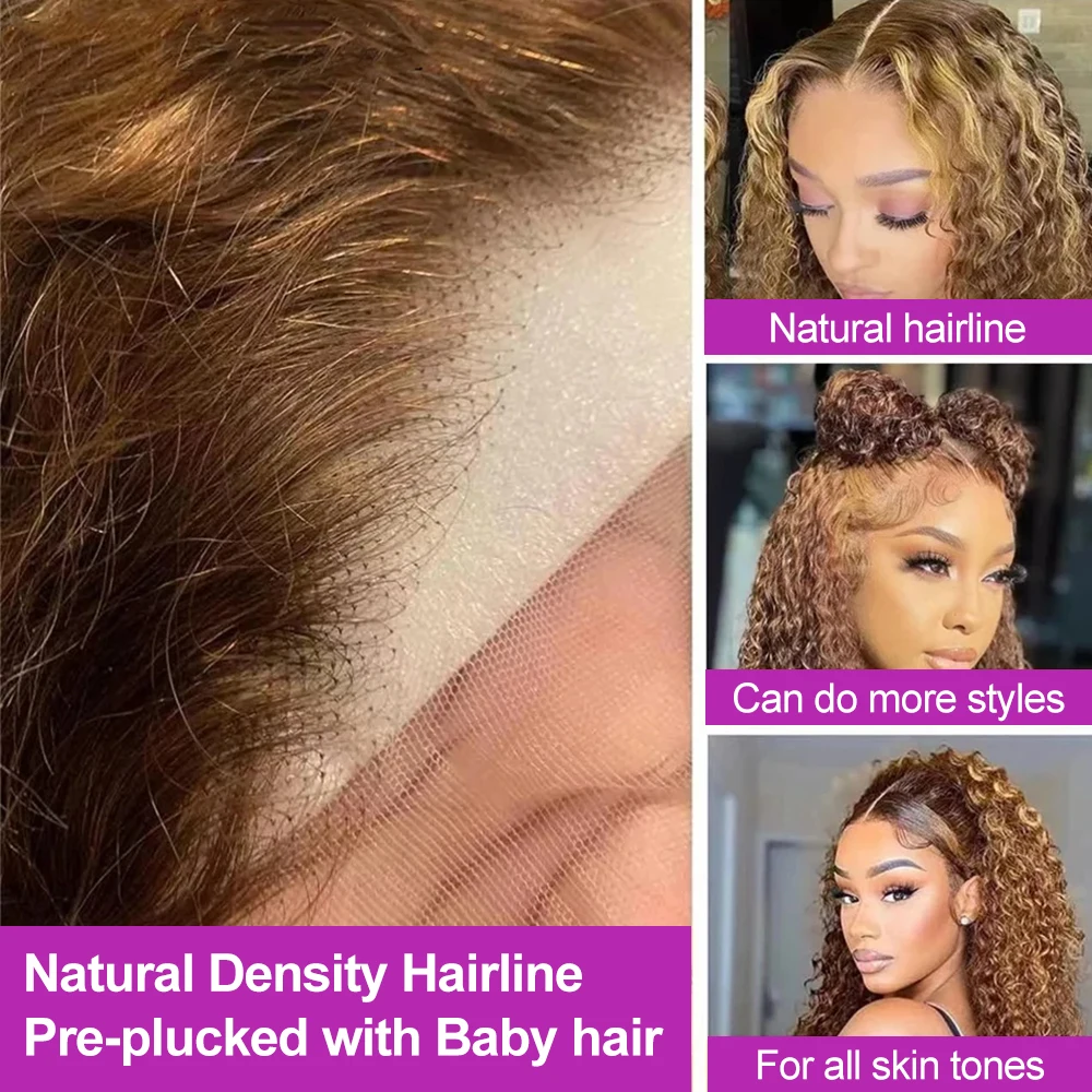 4/27 Ombre Brown Deep Water Wave Short Bob Wigs Highlight Curly 13x4 Hd Lace Fro