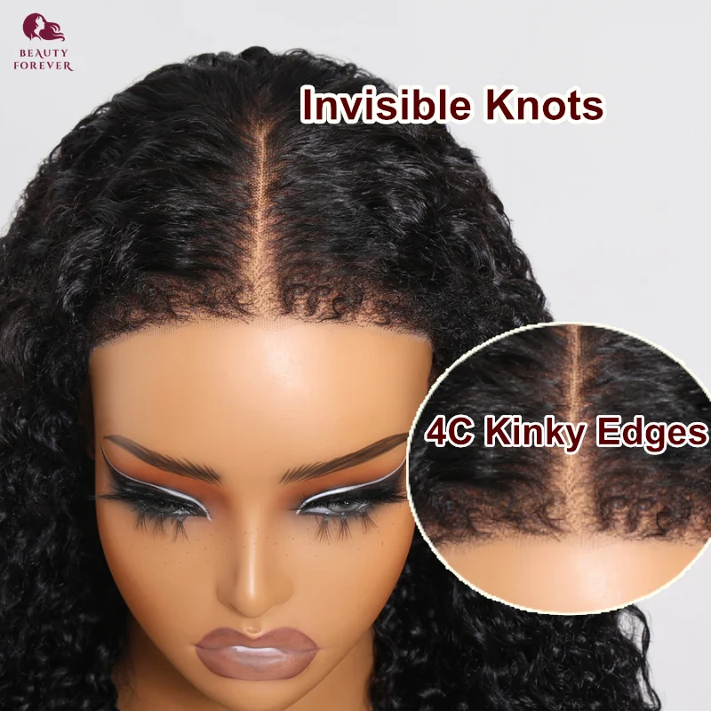 Beautyforever Bye Bye Knots Curly Glueless Human Hair Wig Without Glue Transparent Lace Front Brazilian Virgin Human Hair Wig Density 180%