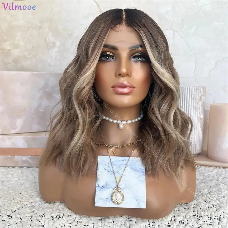 Highlight Ash Blonde 13x4 Lace Front Human Hair Wigs For Women Preplucked With Bleached Knots Natural Wave 5x5 Silk Top Closure Wigs