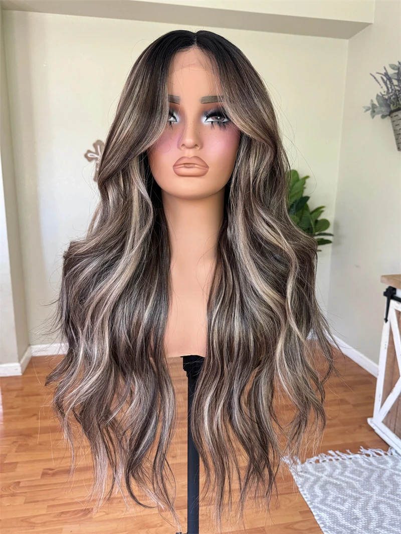 Black Base Ash blonde Wig 13x4 hd Lace Frontal Wig Natural Loose Wave Synthetic