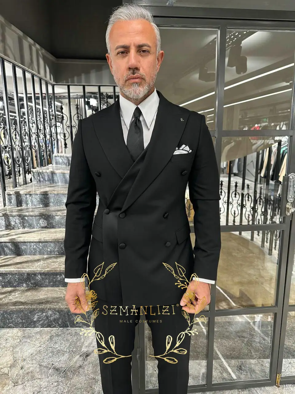 Black Men's Suit 2 Piece Double Breasted Jacket Pants Formal Wedding Groom Tuxed