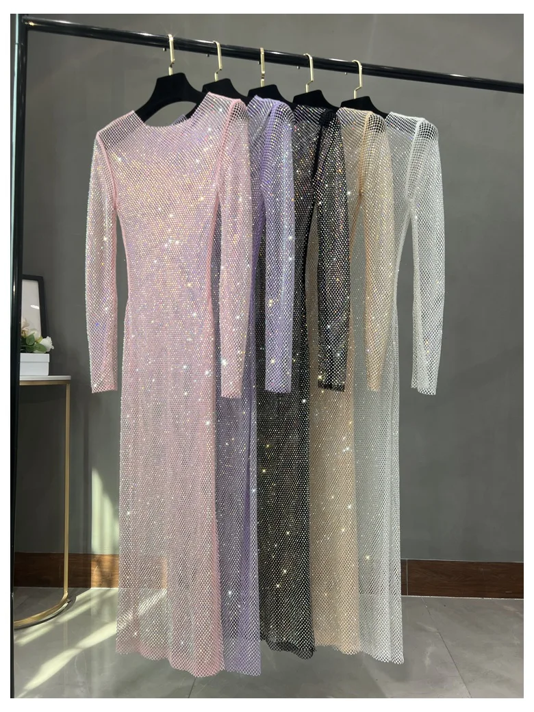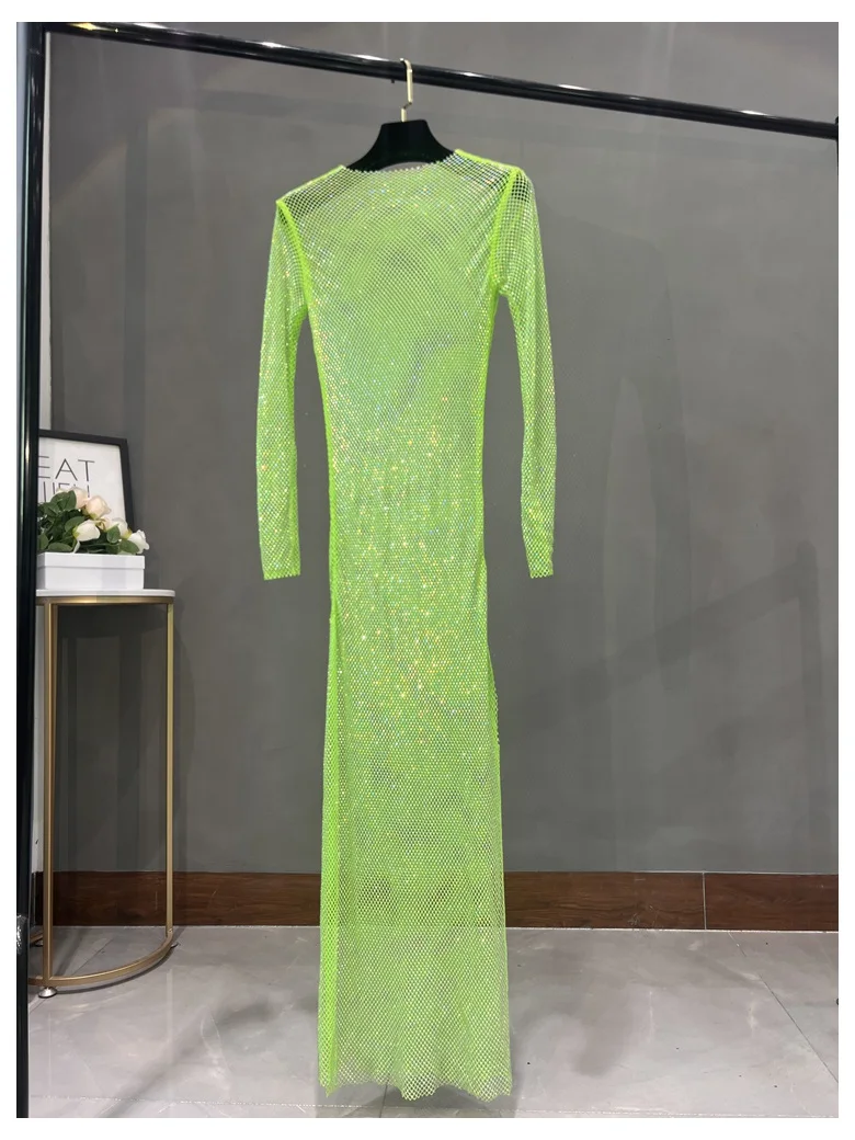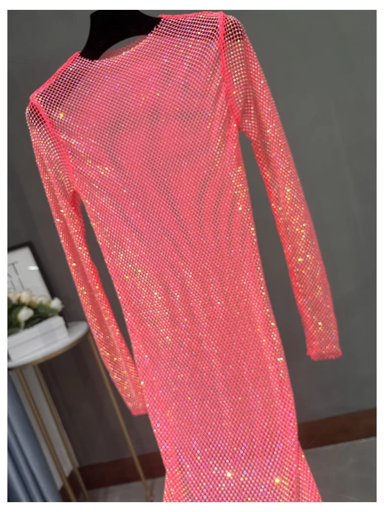 Club Apparel Sexy Rhinestone Dresses Long Sleeve Extra Diamond Dress