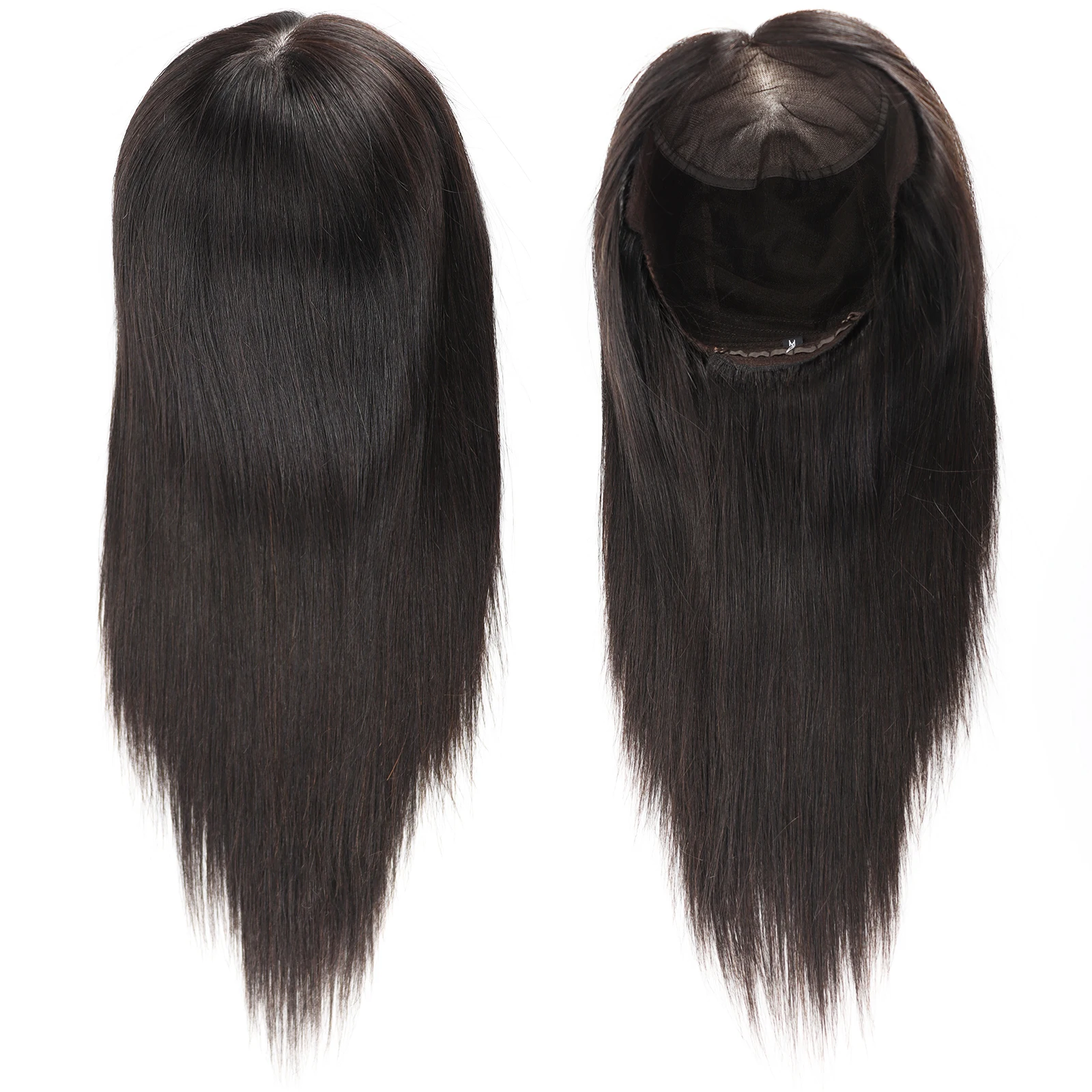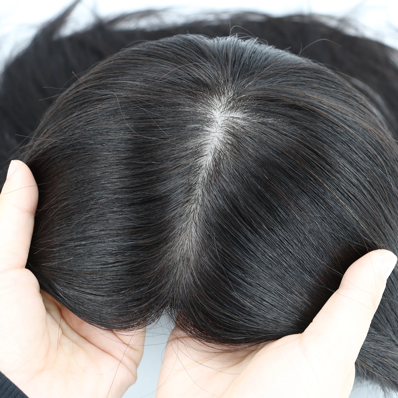 Full Lace Silk Base Wig with PU Front 18" Remy Human Hair Wig for Women Natural Black Silk Top Glueless Wig Natural Scalp