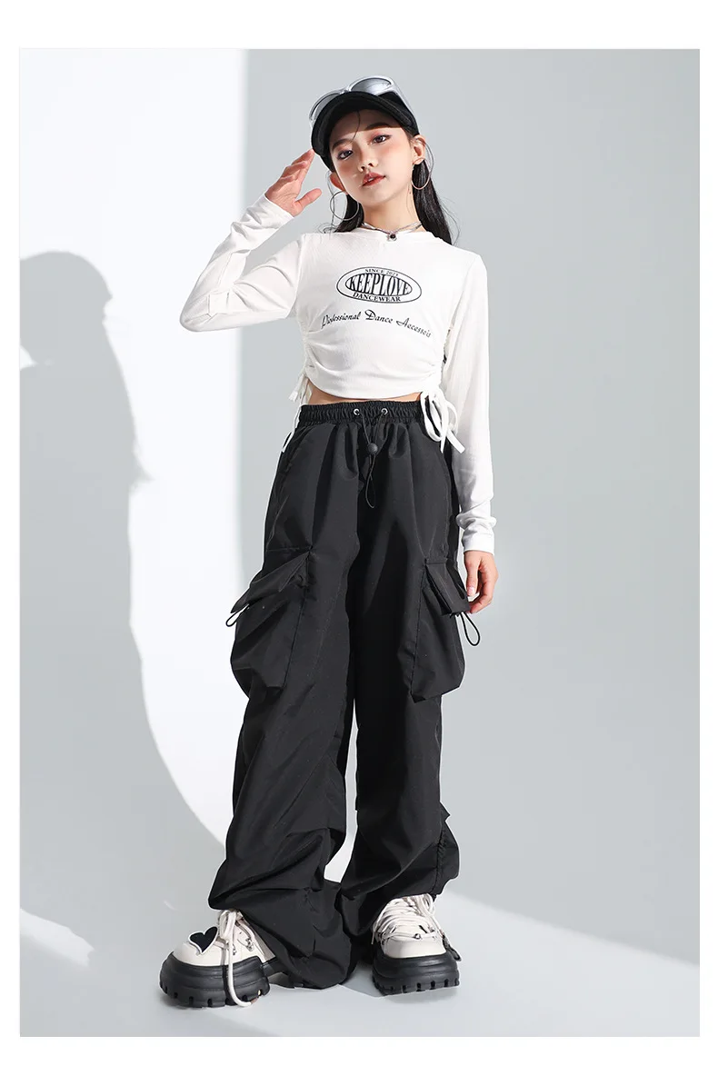 Girls Hip Hop Crop Top Loose Cargo Pants Clothes Sets Children Street Dance Soli