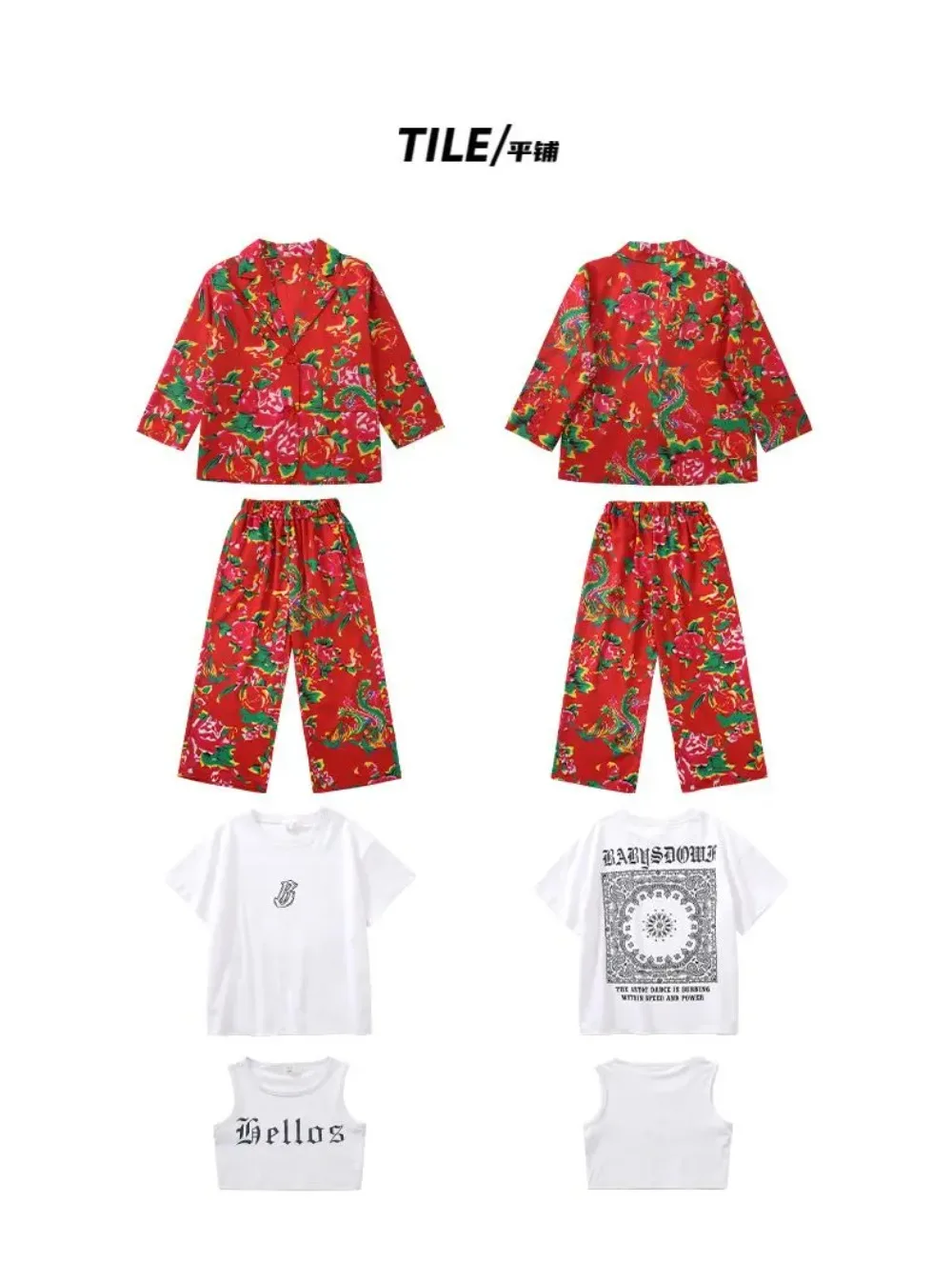 Girls Hip Hop Dance Costume Kids Jazz Street Dance Coat Pants Boys Long Sleeves