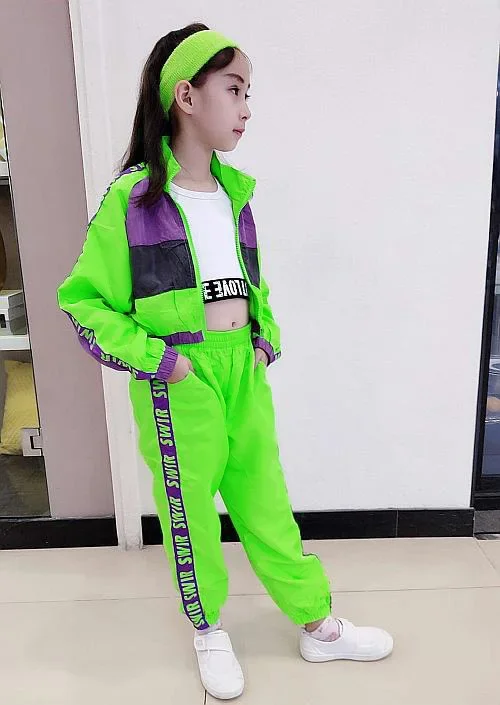 Green Children's Hip Hop Dance Wear Girls Jazz Modern Dancing Costumes Fluoresce
