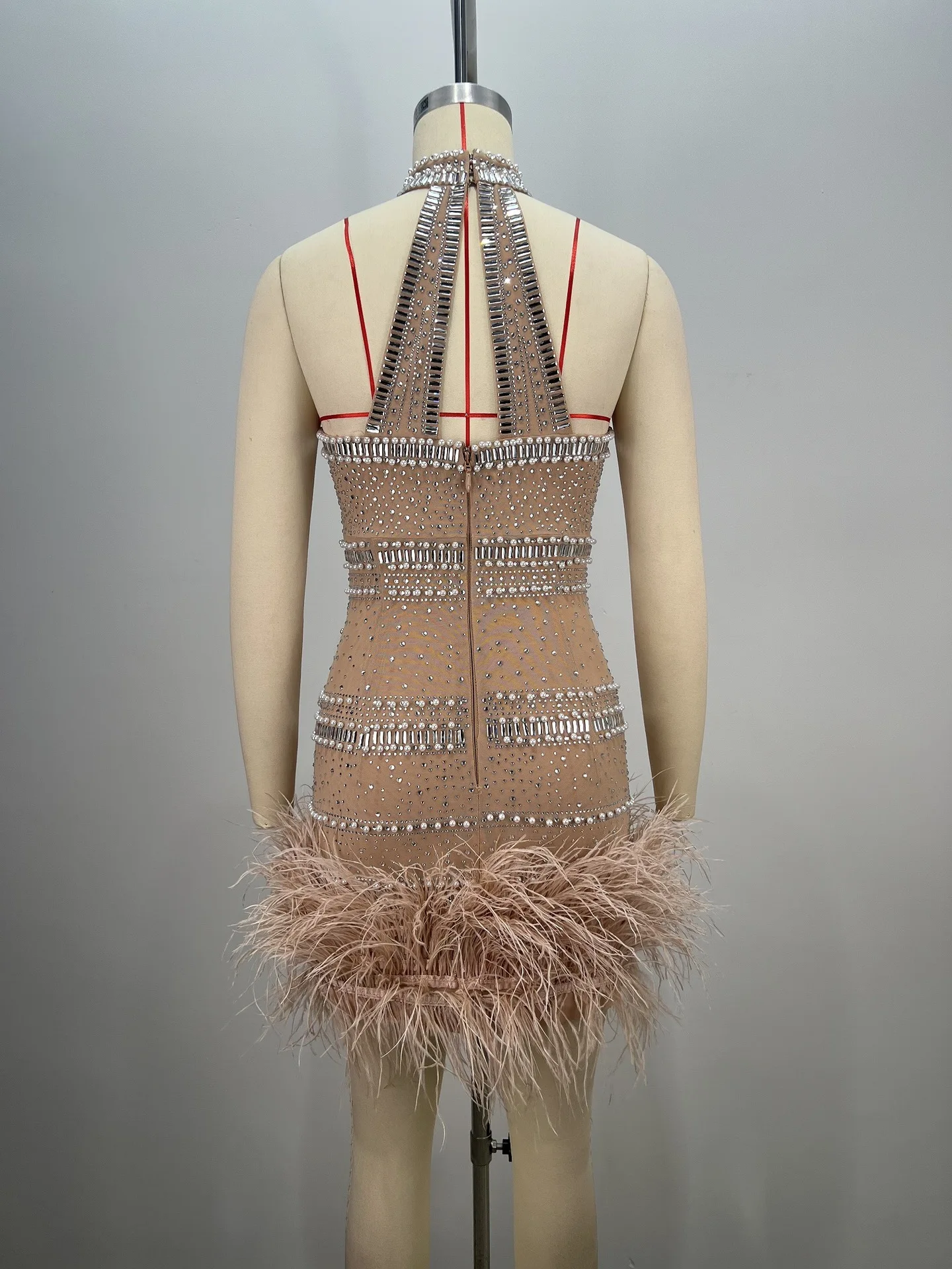 High Collar Hanging Neck Hot Diamond Nail Diamond Pearl Feather Apricot Heavy In