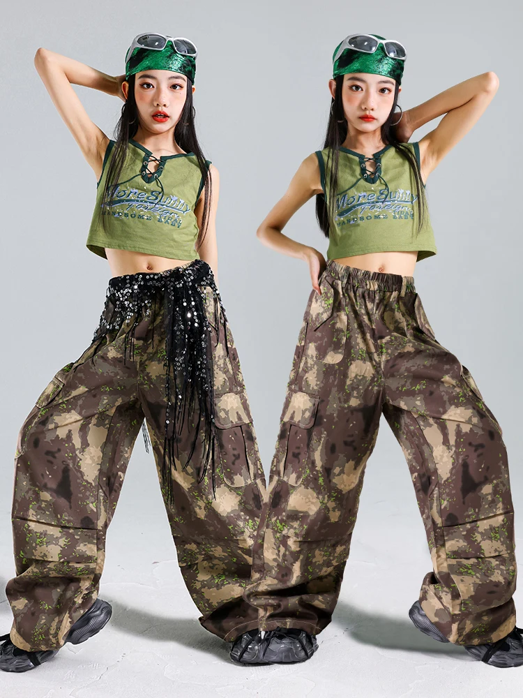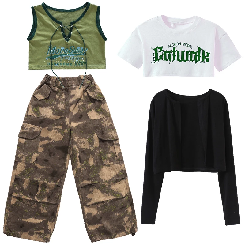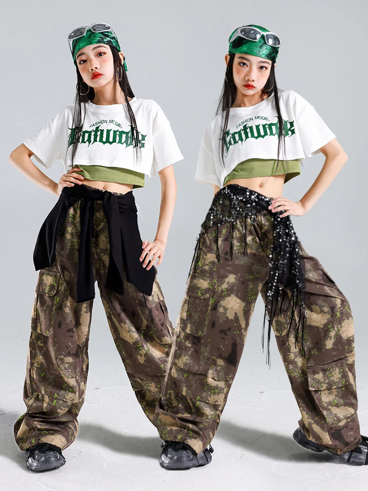 Hiphop Fashion Style Teens Child Crop T-shirt Camouflage Pants Clothing Set Tween Girl Hip Hop Dance Suit Kids Performance Costume
