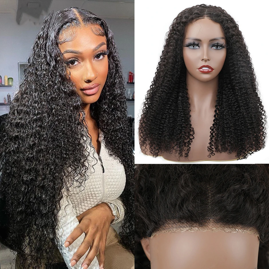 Human hair lace front wig Kinky Curly glueless preplucked human wigs ready to go