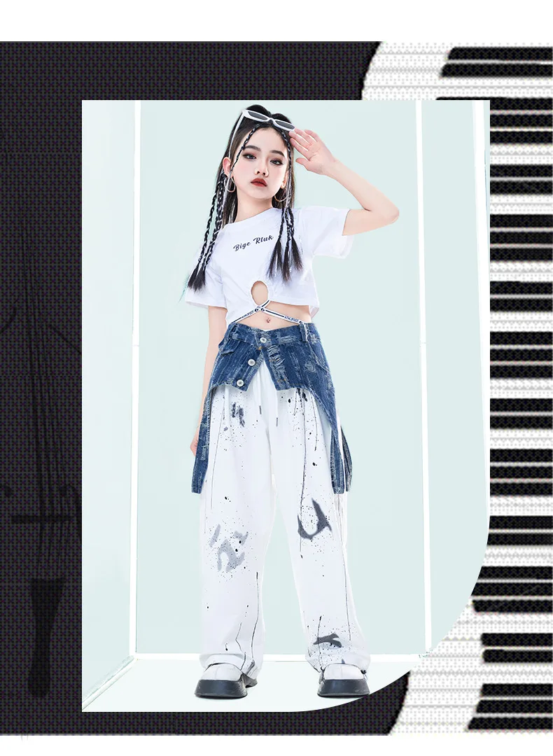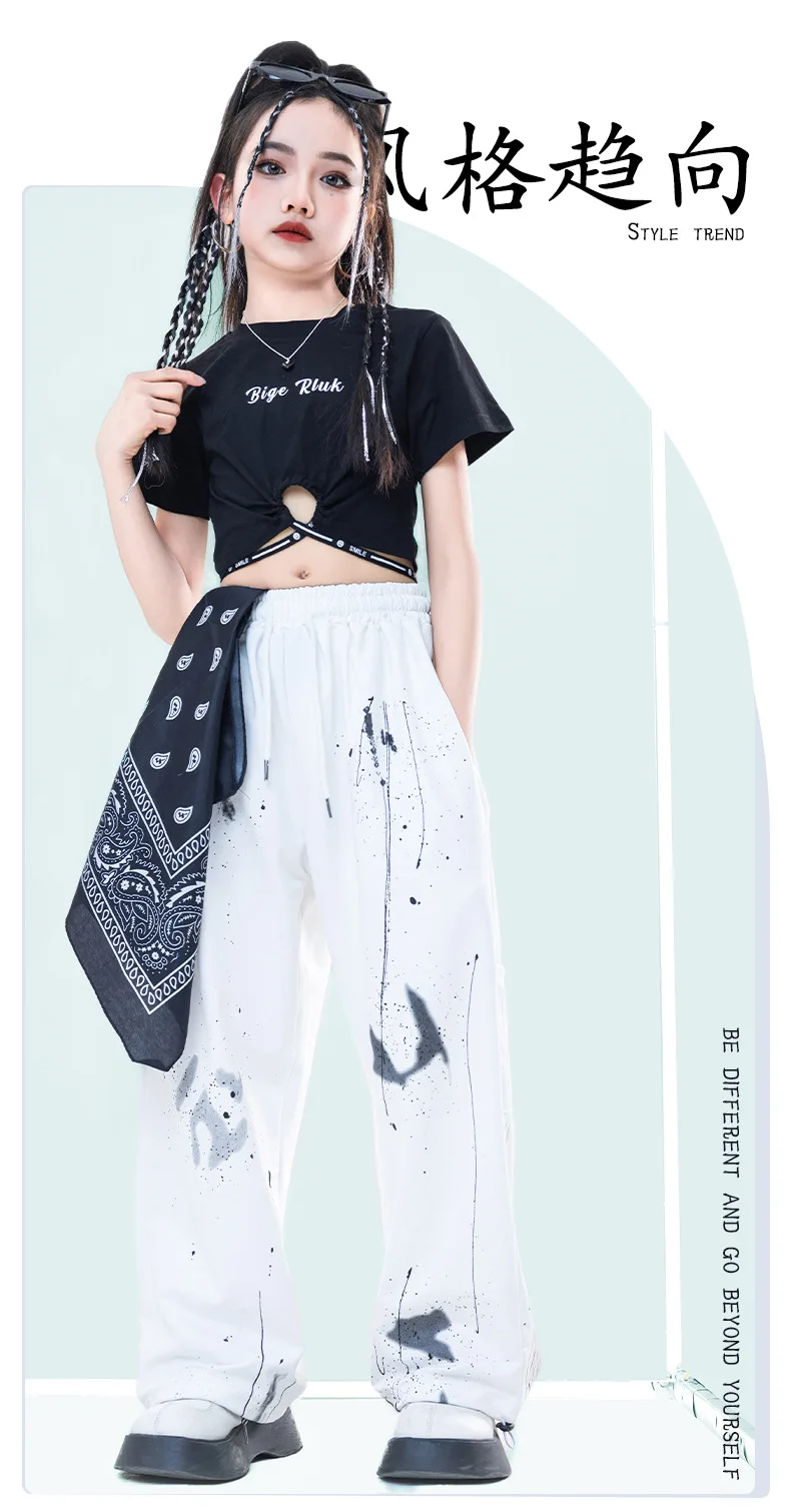 Jazz Costumes Children's Summer Girls' Hiphop Suit Korean Style Girls' Navel-Exp