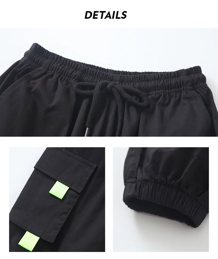 Kid Hip Hop Clothing Black Letters Short Sleeve Shirt Casual Street Cargo Jogger