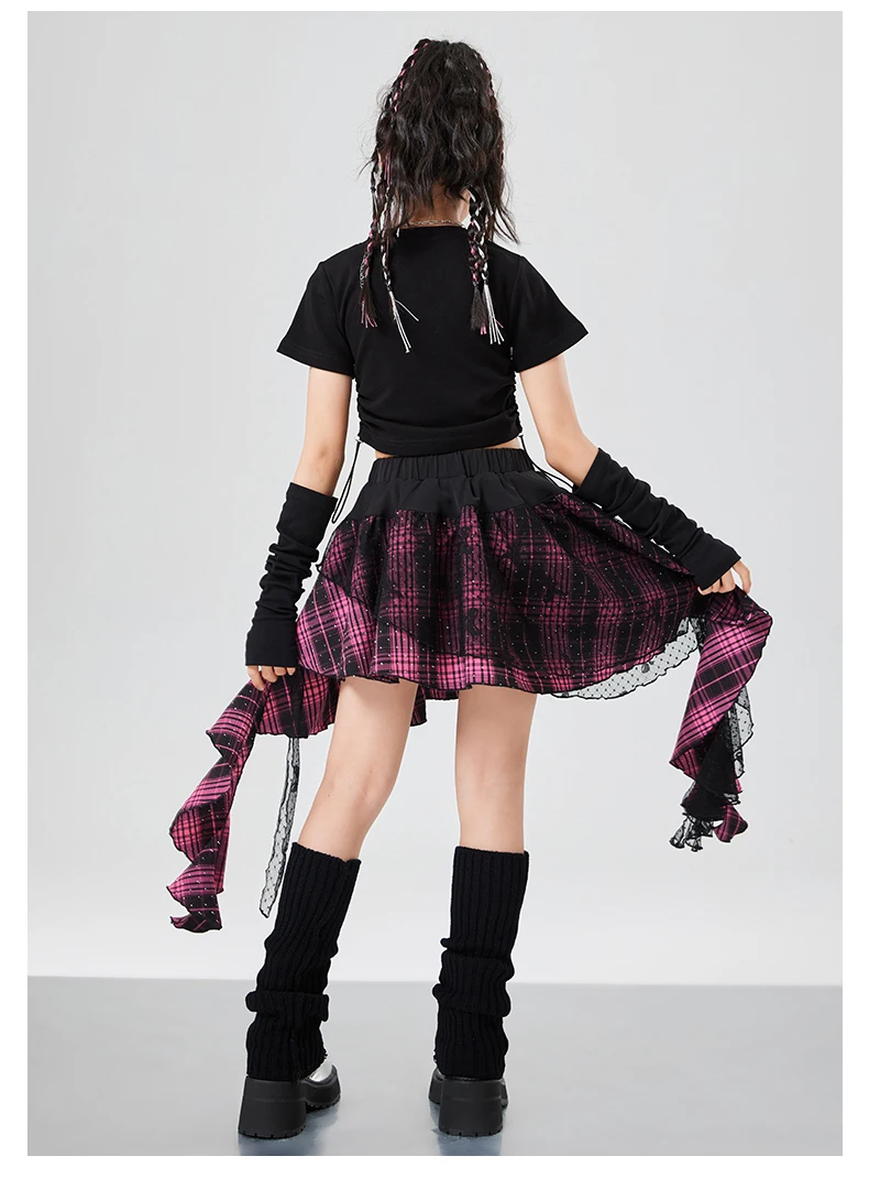 Kids Hiphop Fashion Style Rapper Clothes Set For Girl T-shirt Skirt Hip Hop Outf