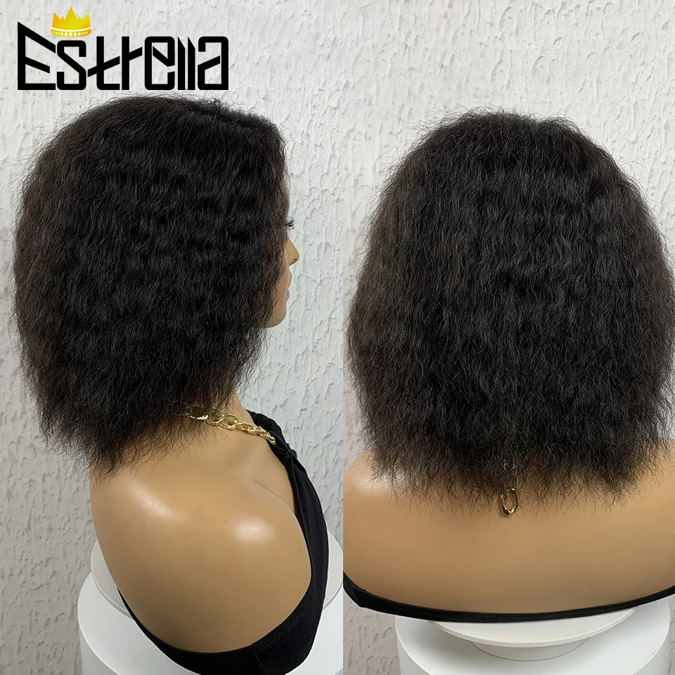 Kinky straight Human Hair Lace Frontal Wig Brazilian Side Part Lace Front Human