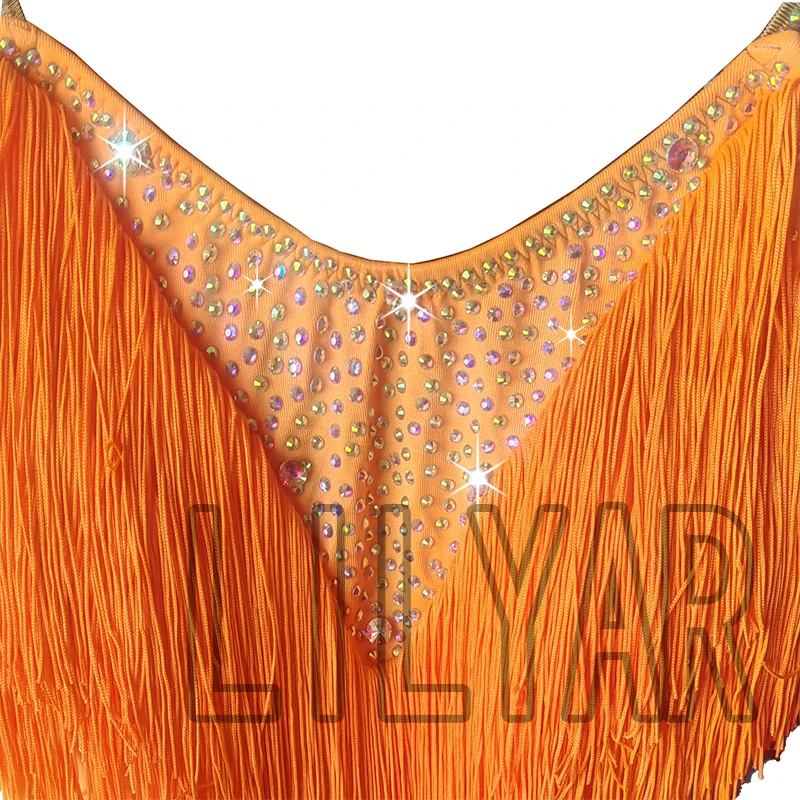 Latin Dance Dress Competition Costumes Skirt Performing Rhinestones Adult Childr