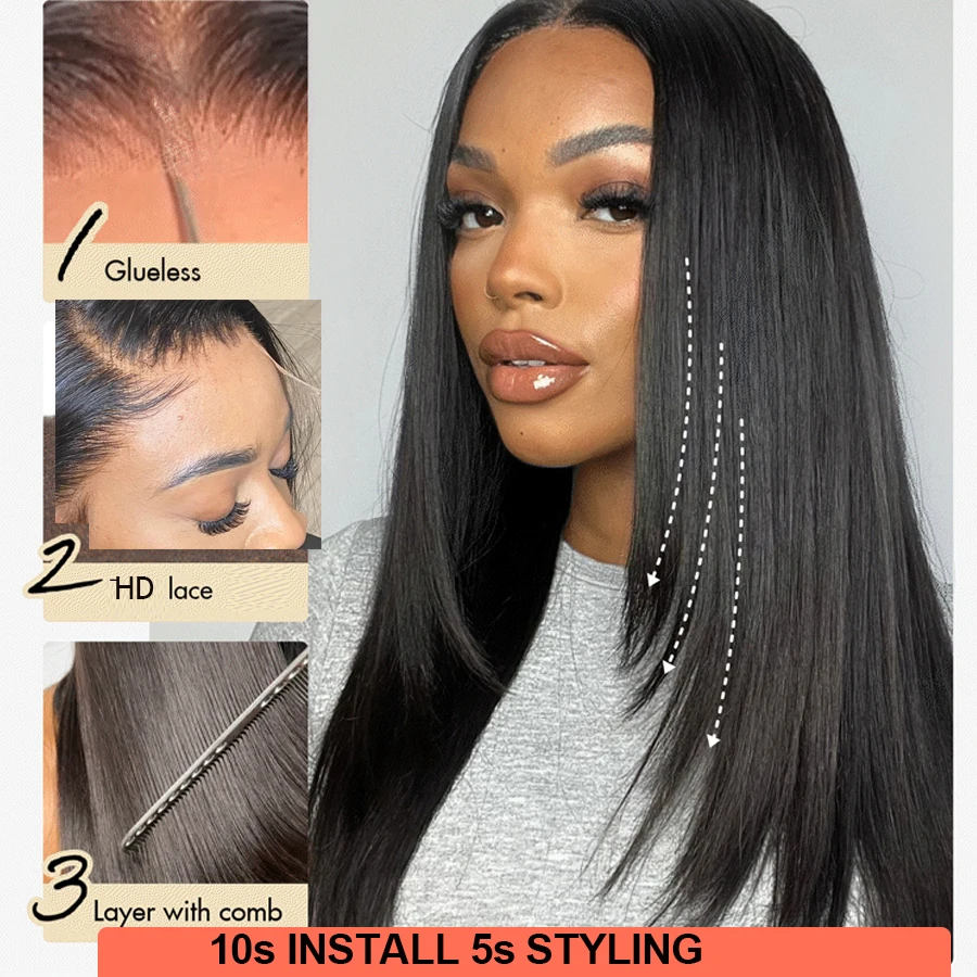 Layered Cut Glueless 6x6 HD Lace Front Closure Human Hair Wigs Ready To Wear Str