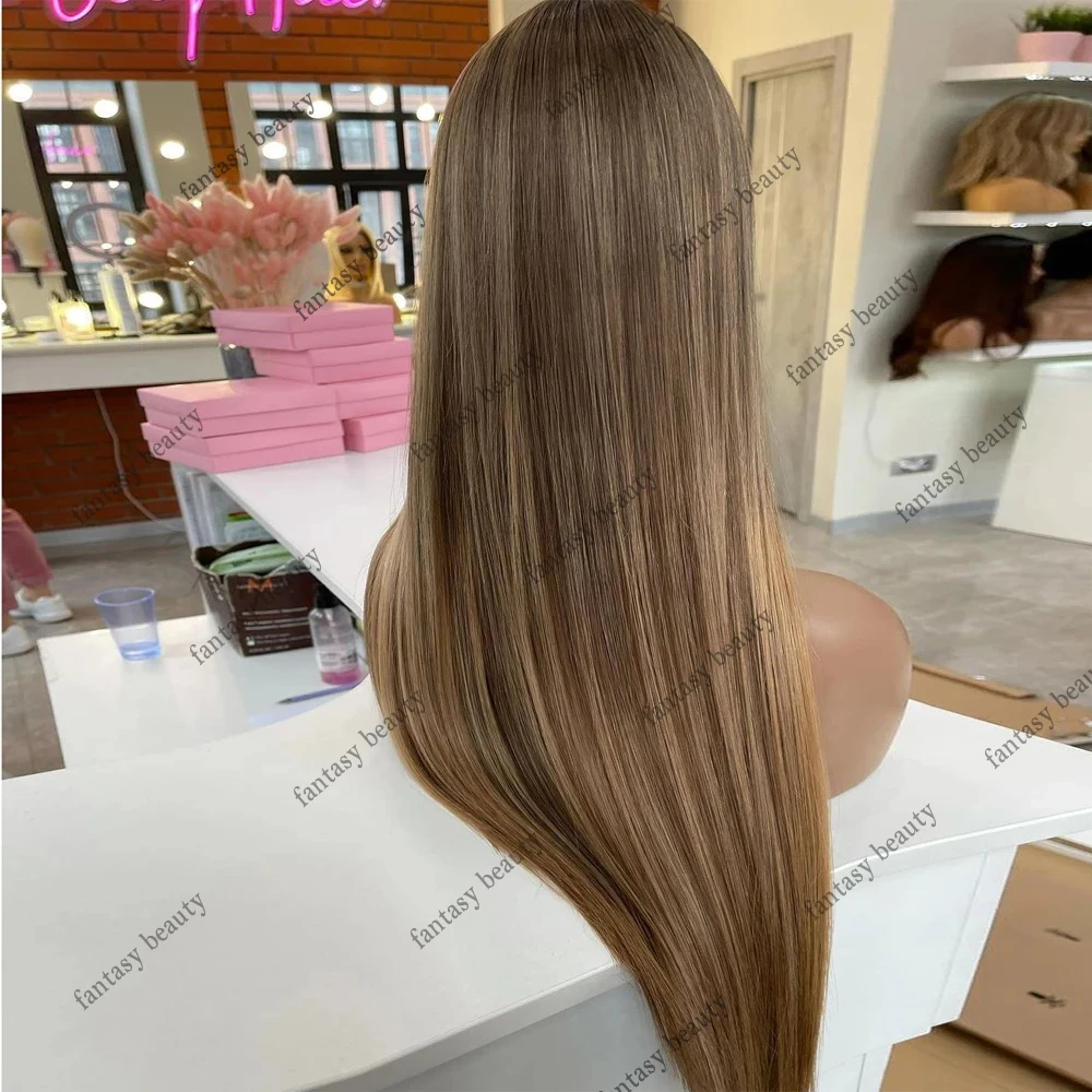 Light Brown Blonde 360 Full Lace Front Human Hair Wigs Highlighted Wig Silky Straight 100% Human Hair 13x6 HD Lace FrontalMaterial: Best Selected Unprocessed Natural Human Hair