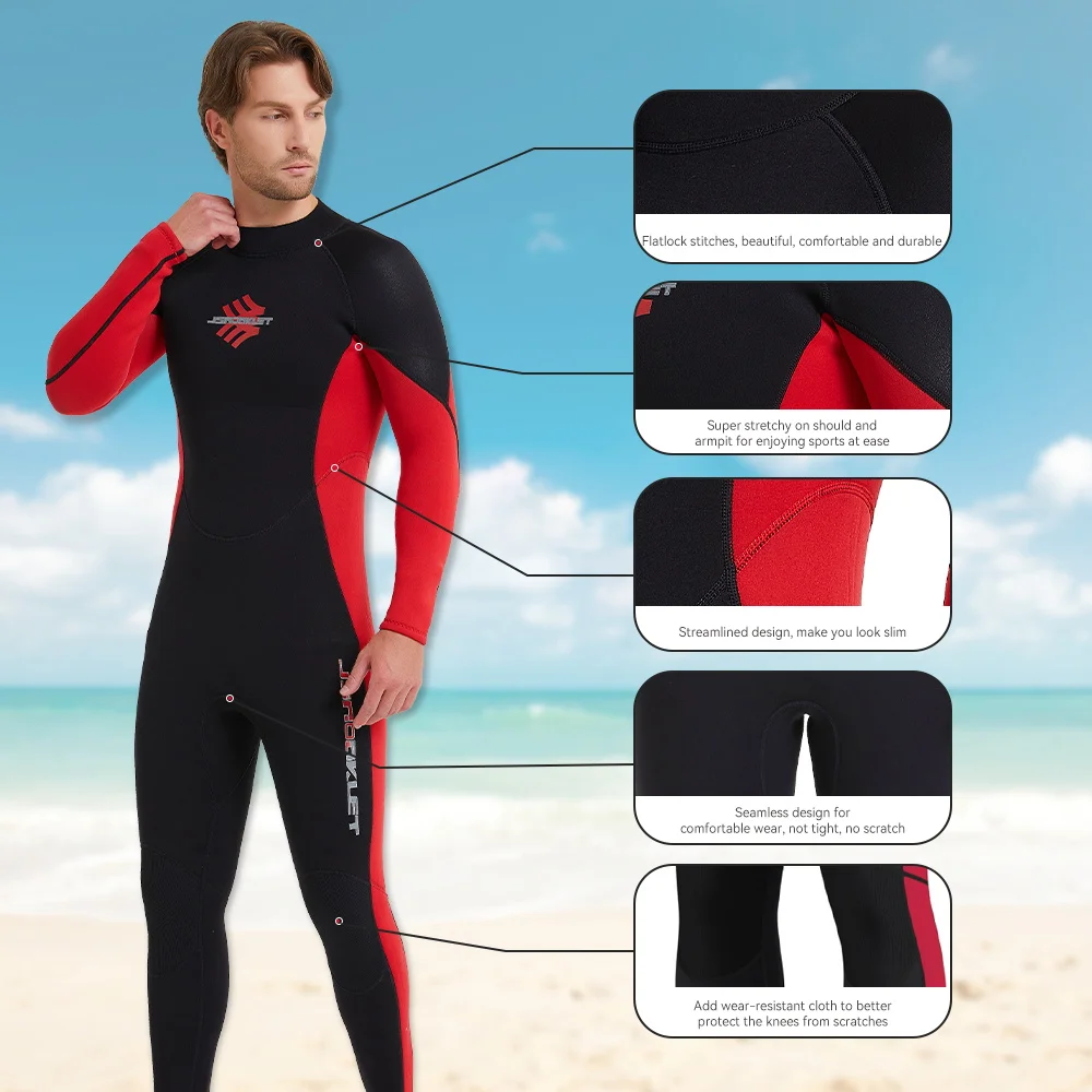 Men's 3mm Neoprene Snorkeling Suit Warm Anti-Jellyfish Cold-Proof One-Piece Back