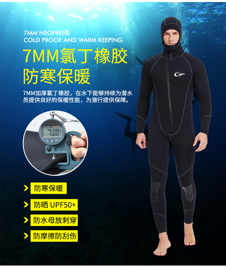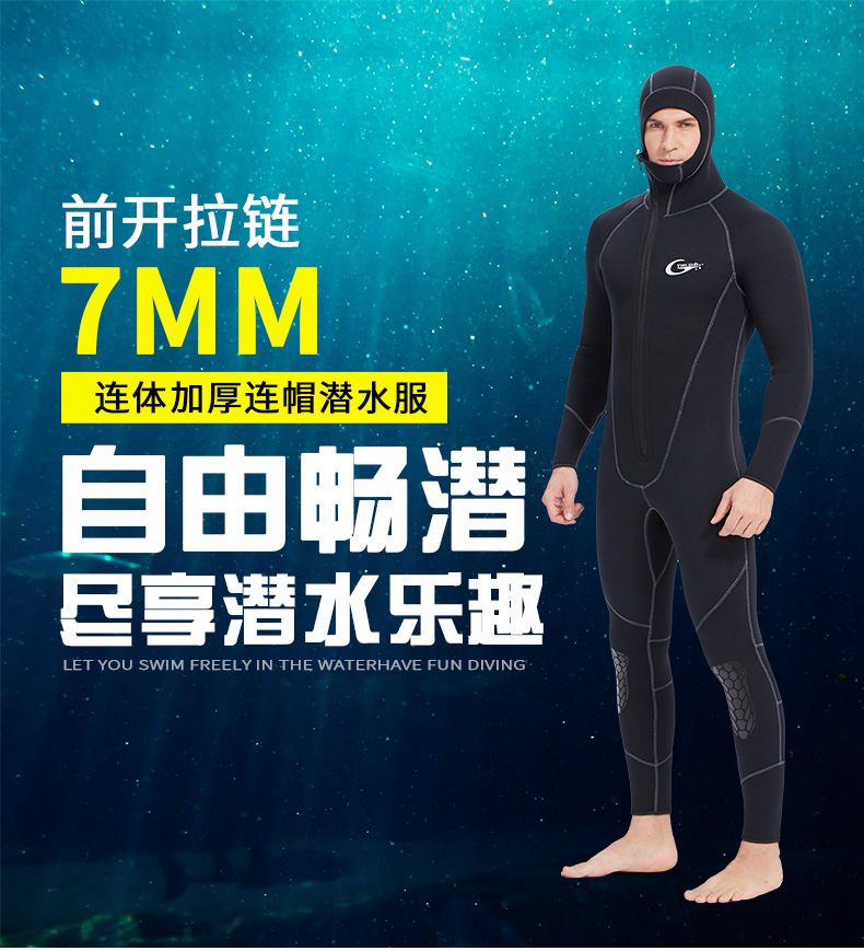 Men's/Women's One-piece Long Sleeve Hoodie Wetsuit-7mm Neoprene