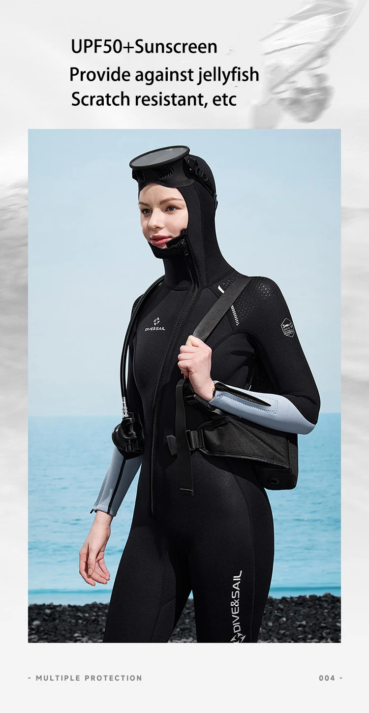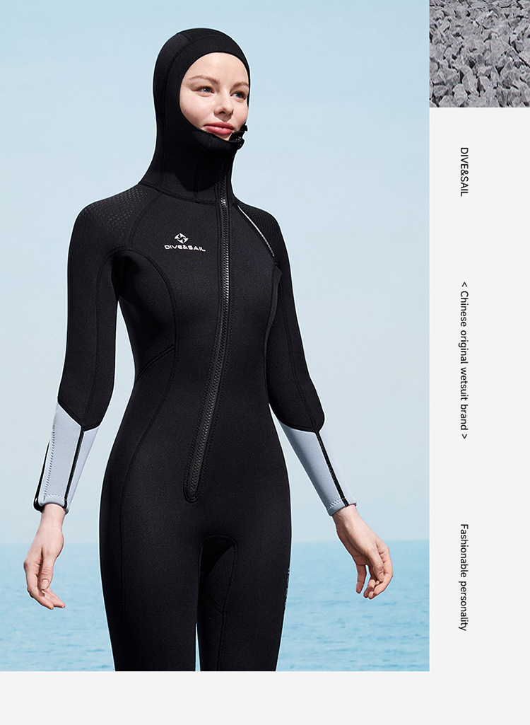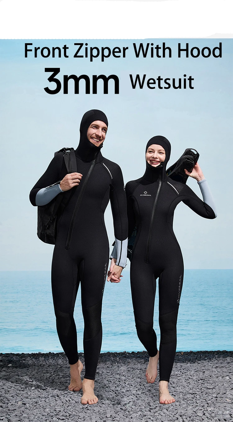 Men Women 3mm Neoprene Wetsuit One-piece Full Body Diving Suit Front Zip Wetsuit With Hood for Scuba Snorkeling Surfing Swimming