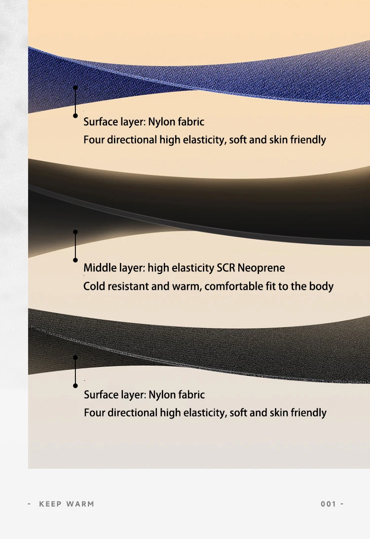 [Quality Neoprene Material] Three layers of men's & women's wetsuit, the outer is imported nylon fabric, it is high elastic and durable; the middle insulation is neoprene, it is high scalability, soft-close skin heating to keep warm.
