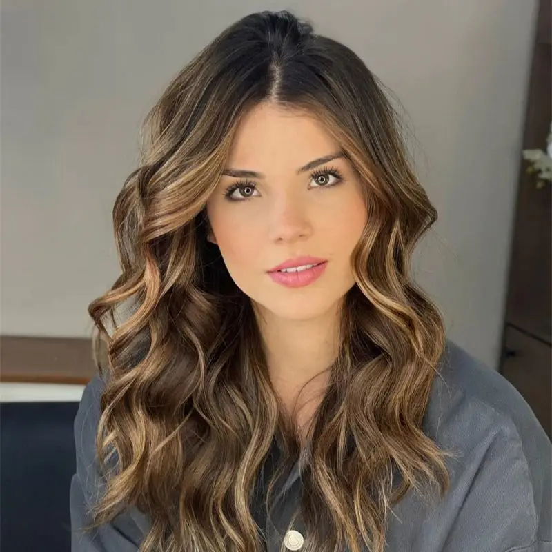 Natural Hair Synthetic Blend 10% Human Hair Wig Brunette Brown Blonde Wig 13x4 hd lace frontal wig Fashion money piece wig 20''