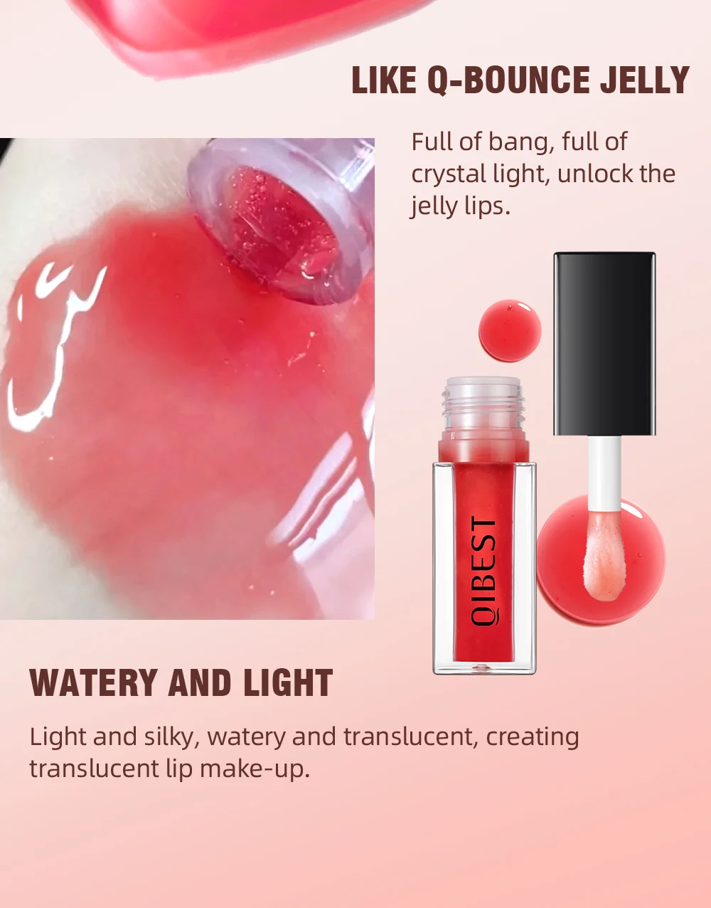 QIBEST New Crystal Lip Gloss Jelly Lip Oil Gloss Sexy Plump Makeup Moisturizing