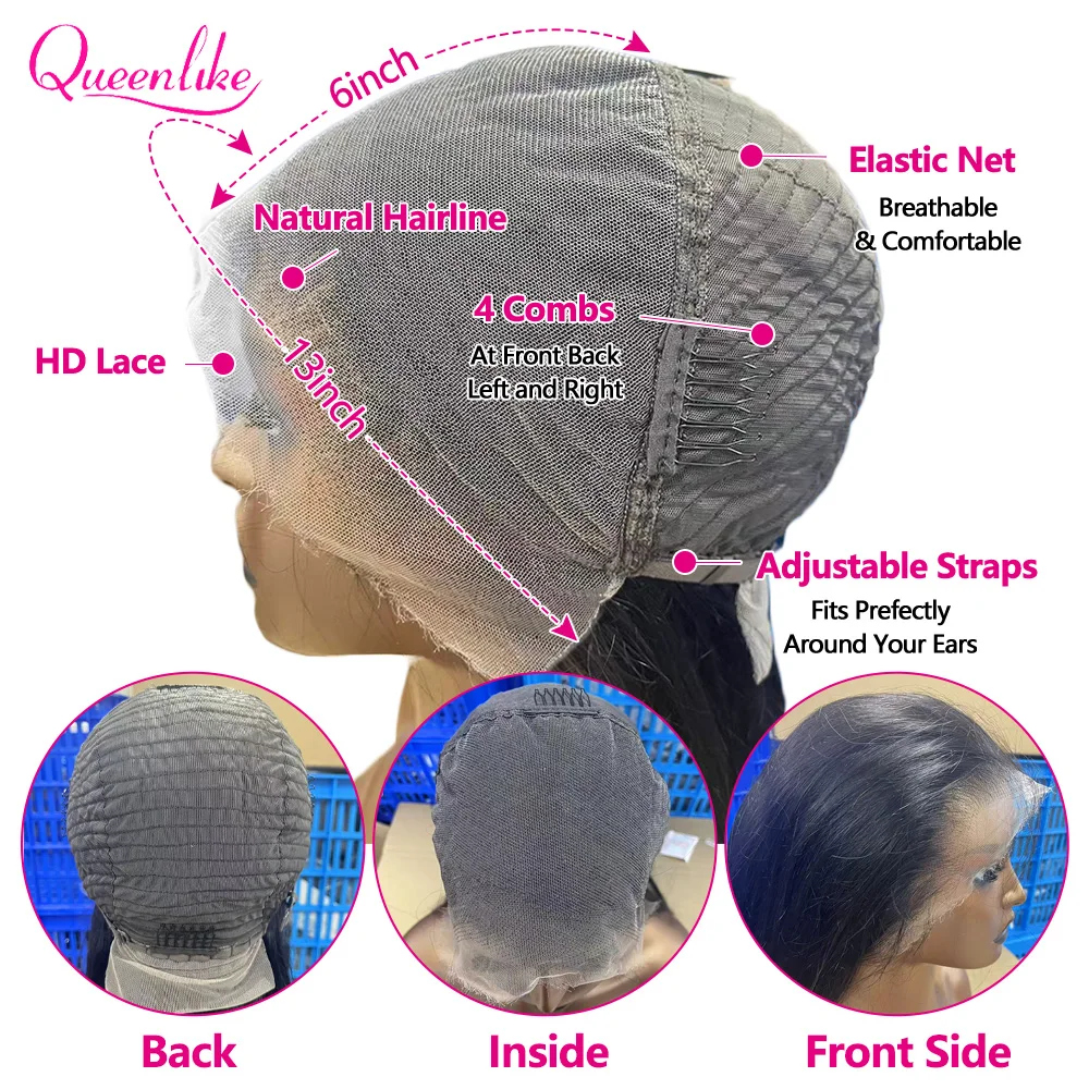 Queenlike 26 Inch 13x6 HD Lace Frontal Human Hair Wigs Straight Remy Hair Fronta