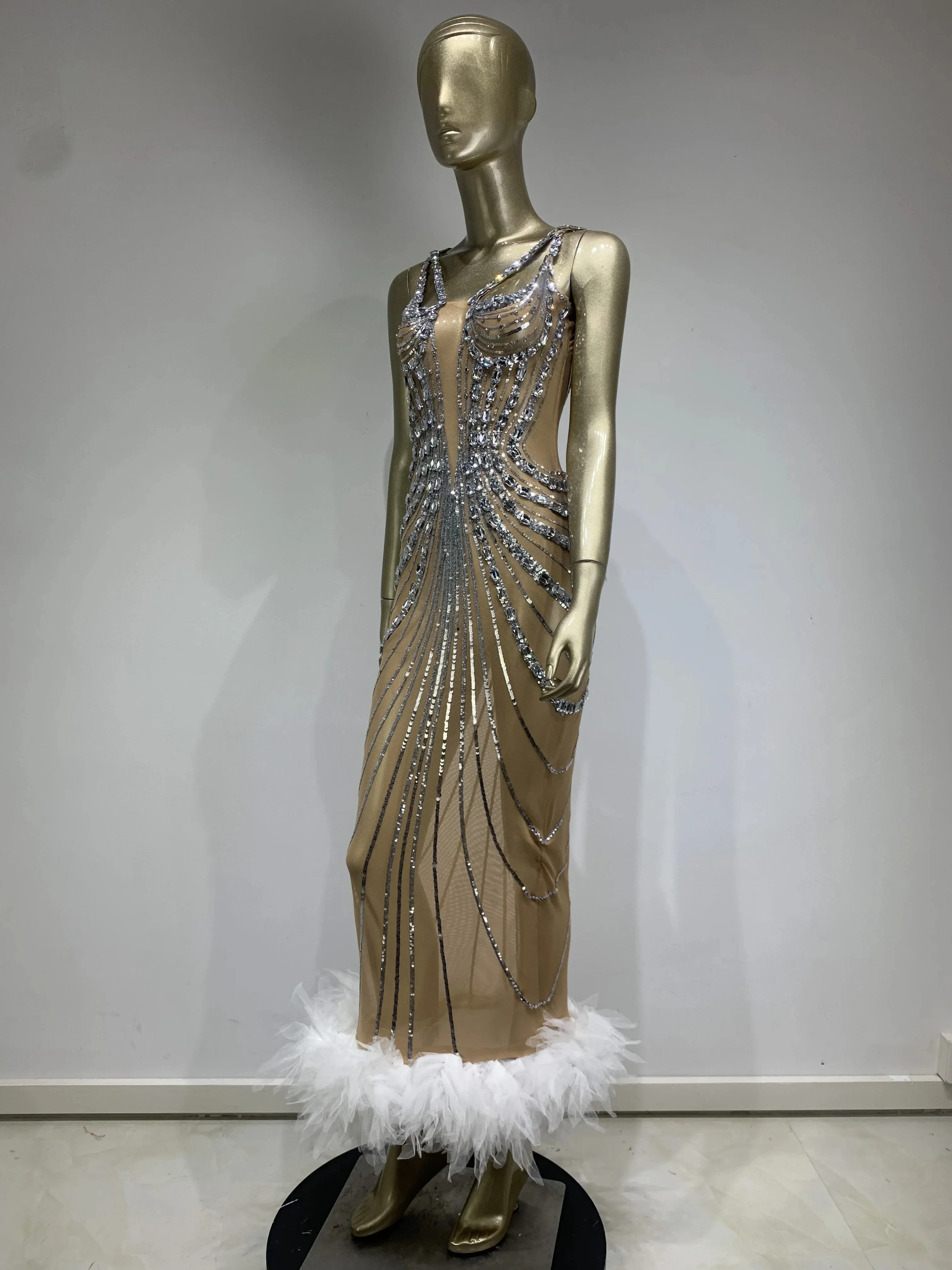Ready Dress Women Sexy See Through Evening Party Gowns Sleeveless Mesh Crystal S