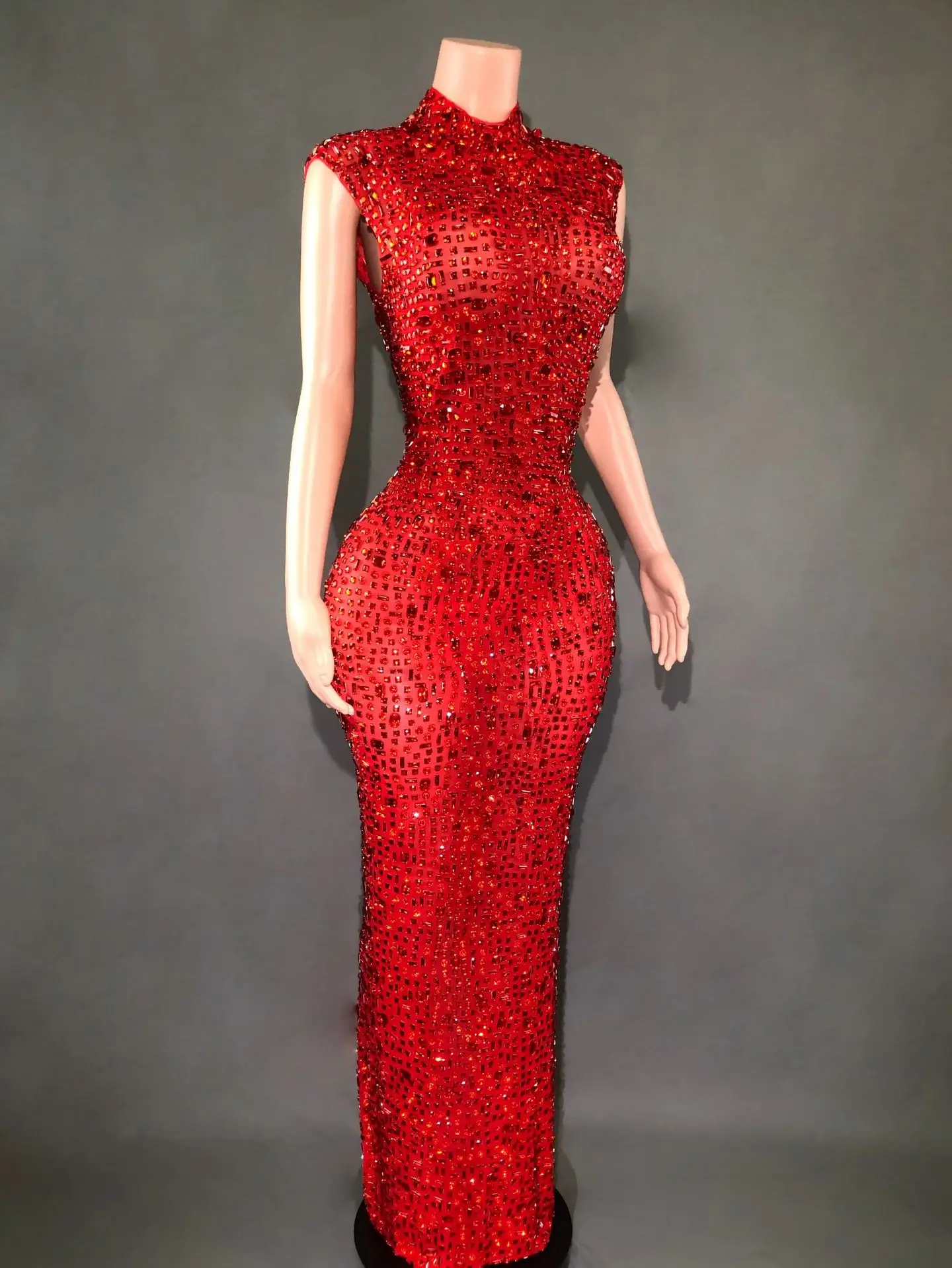 Real Photos Women Summer Luxury Party Dress Bright Crystal Mesh Long Birthday Ce