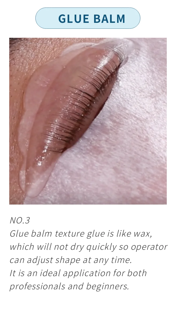 1.GLUE BALM MORE EASY AND FAST TO FIXATION LASH WHEN COMPARE TO REGULAR LASH LIFT GLUE.