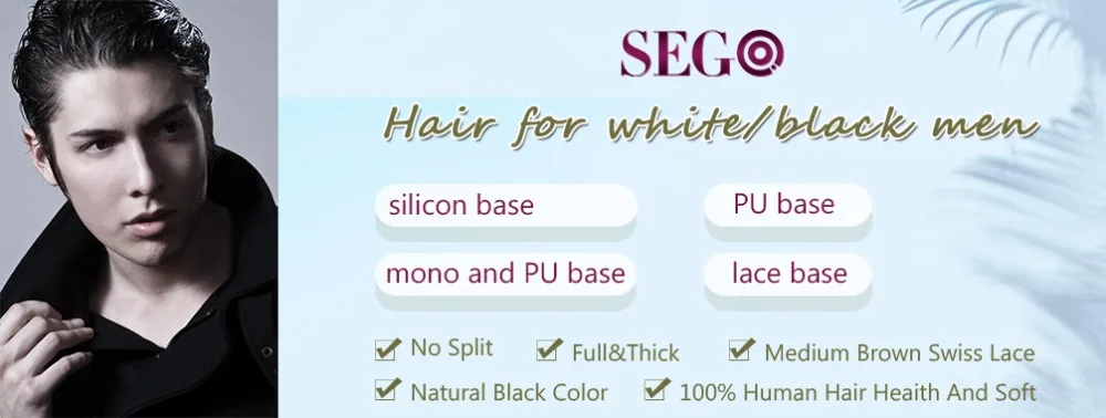 SEGO 16x19cm Men Toupee for Men Human Hair Pieces Hair Unit Wig Male Toupee Repl