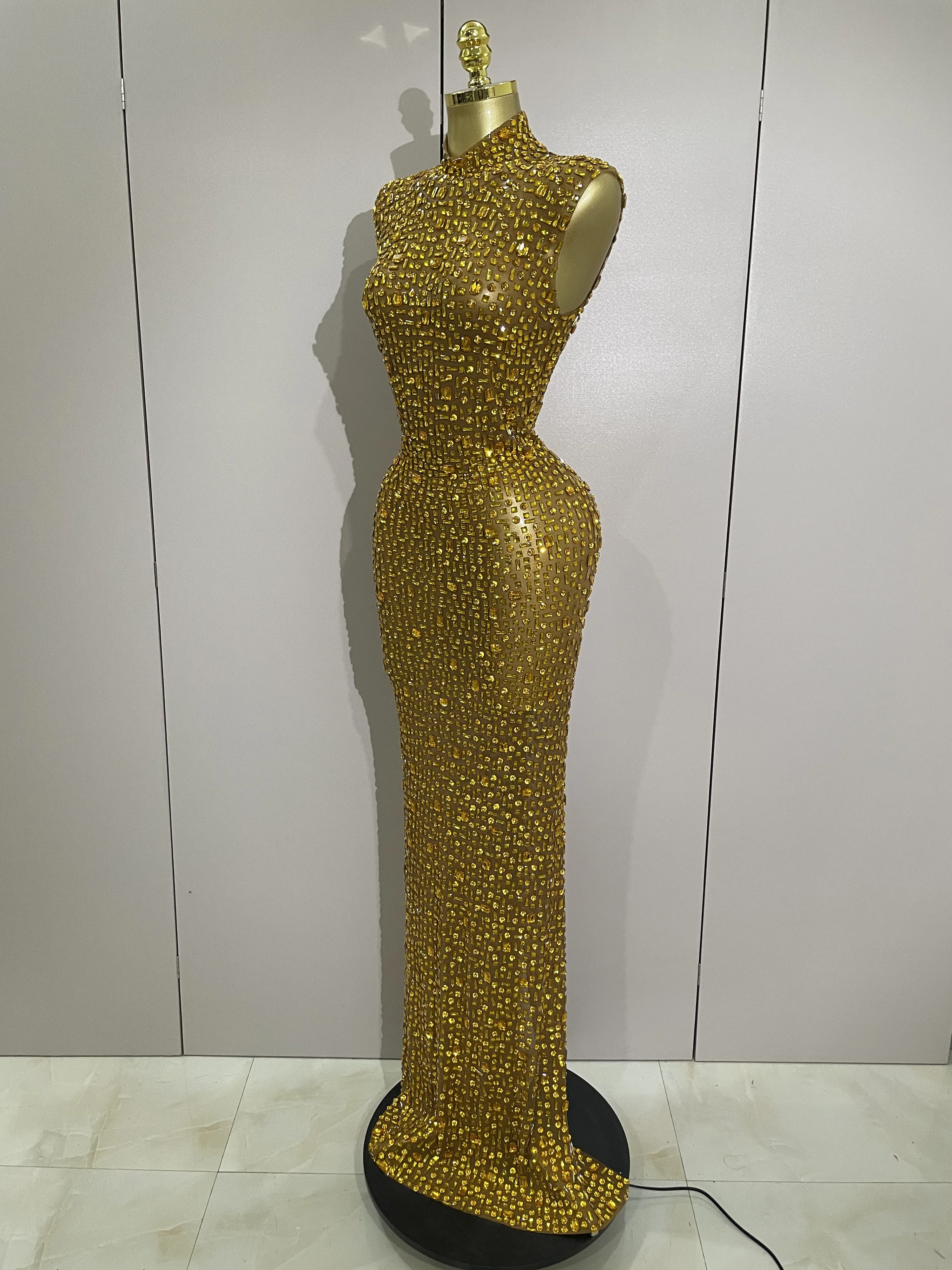 Sexy Sparkly Crystal Diamonds Mesh See Through Long Dress 2025 New Women Elegant