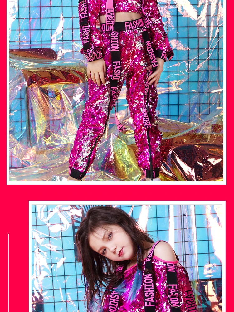 Shelf Drum Performance Clothes Outfits Kids Hip Hop Dance Clothing Rose Sequins