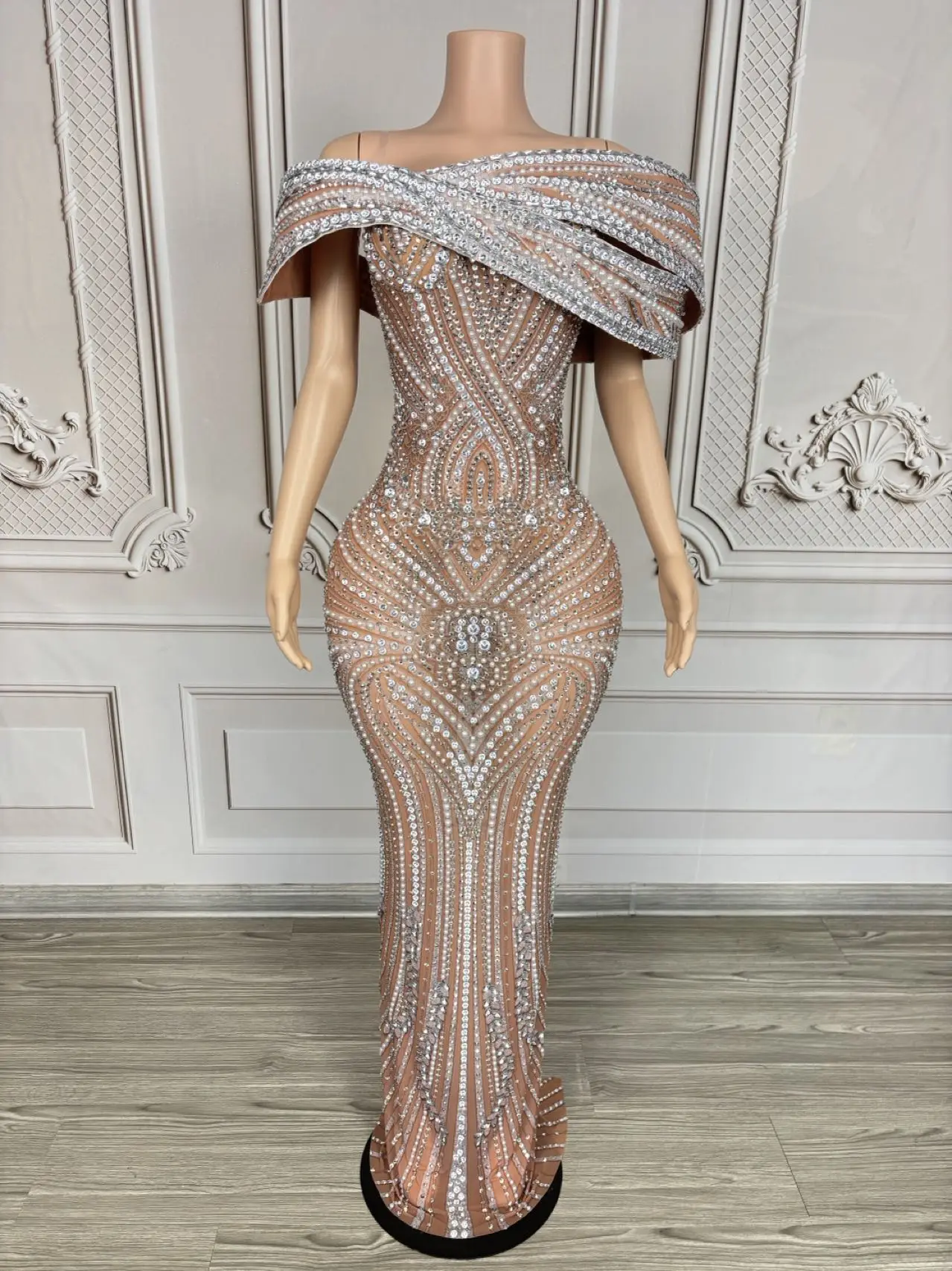 Sparkly Crystals Luxury Strapless Gown Sexy Women Birthday Celebrate Party Outfi