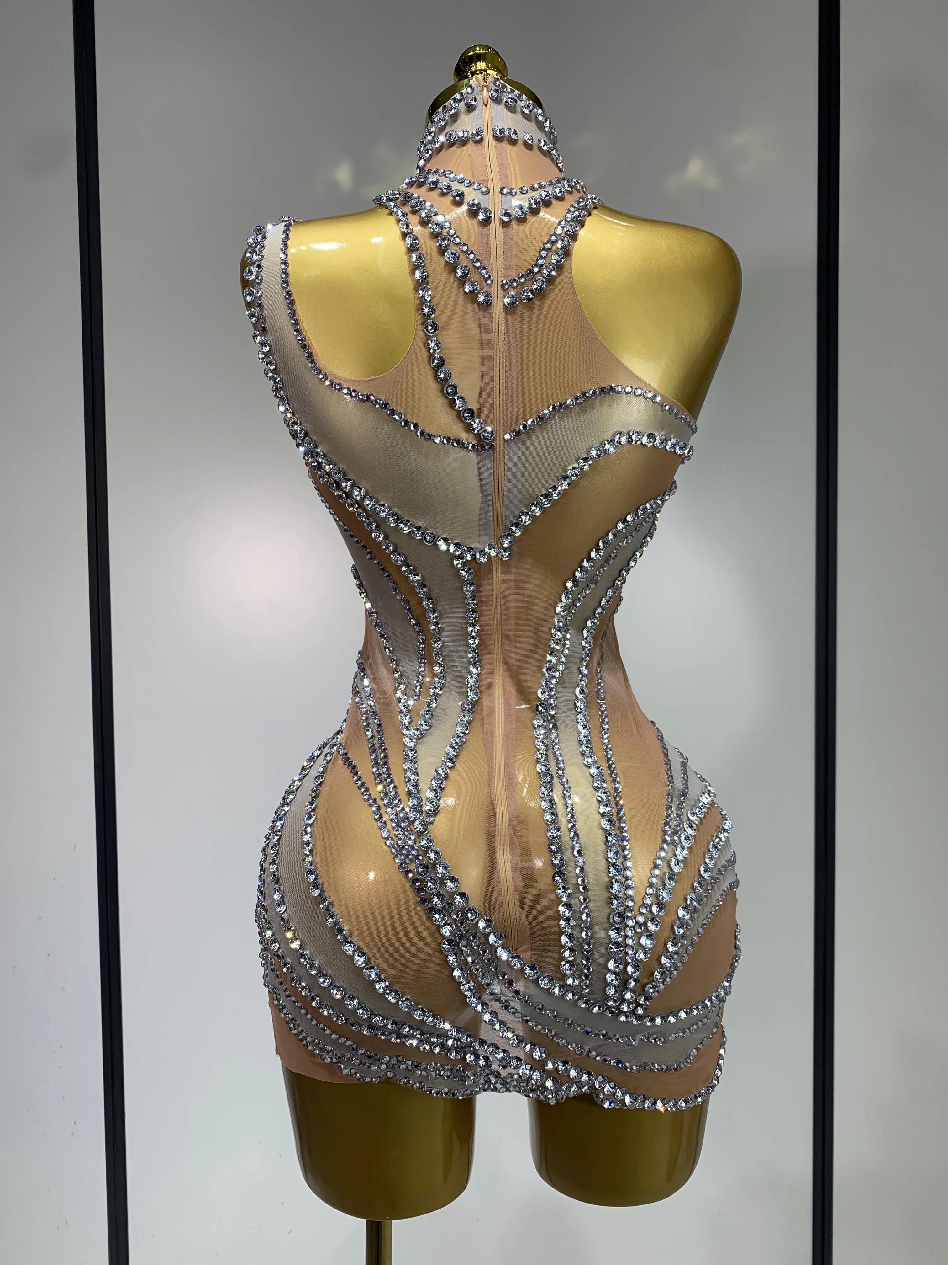 Sparkly Crystals See Through Women Cocktail Dresses Celebrate Birthday Party Gow