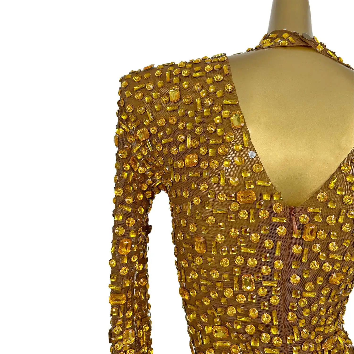 Sparkly Diamonds Long Sleeve Dress Women Sexy Birthday Celebrate Evening Prom Dr
