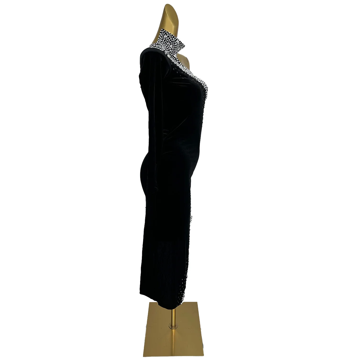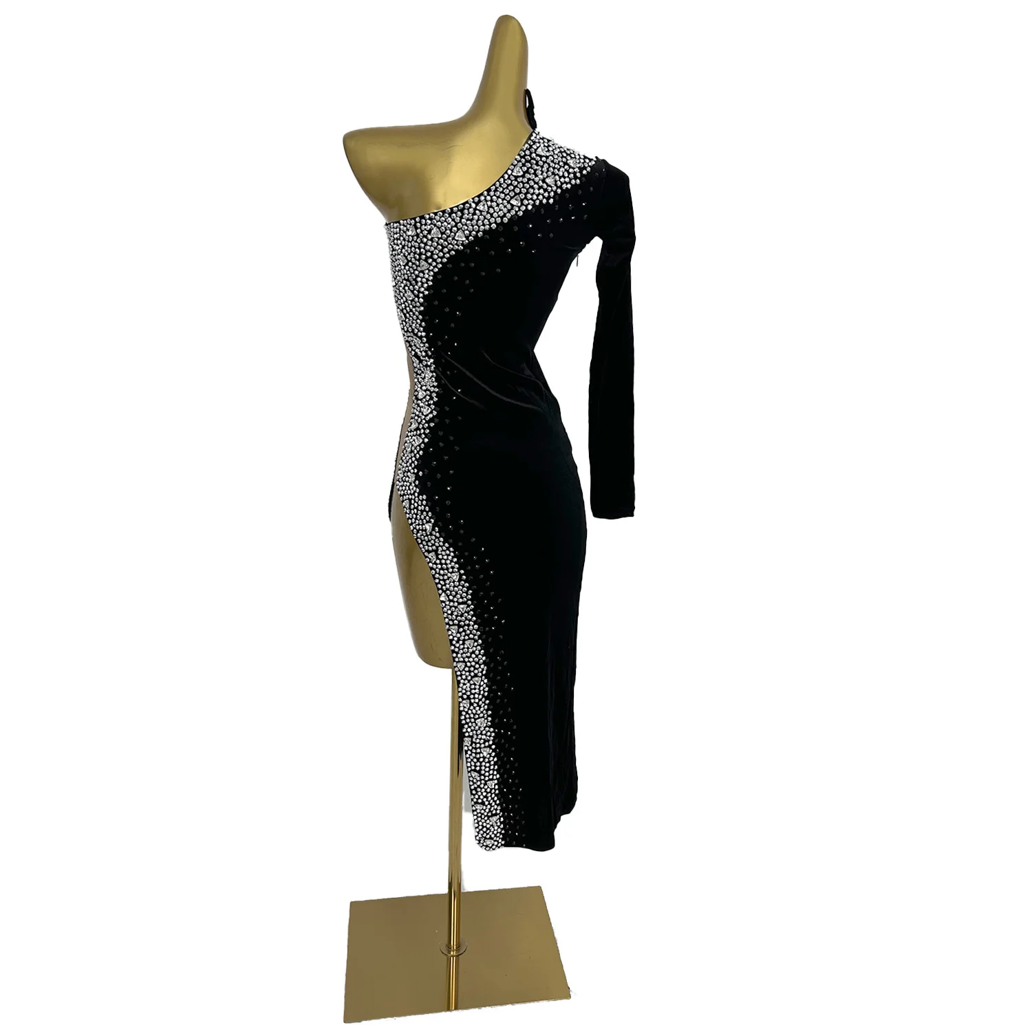 Sparkly Rhinestone Asymmetrical Skinny Dress Elegant Women Festival Celebrate L