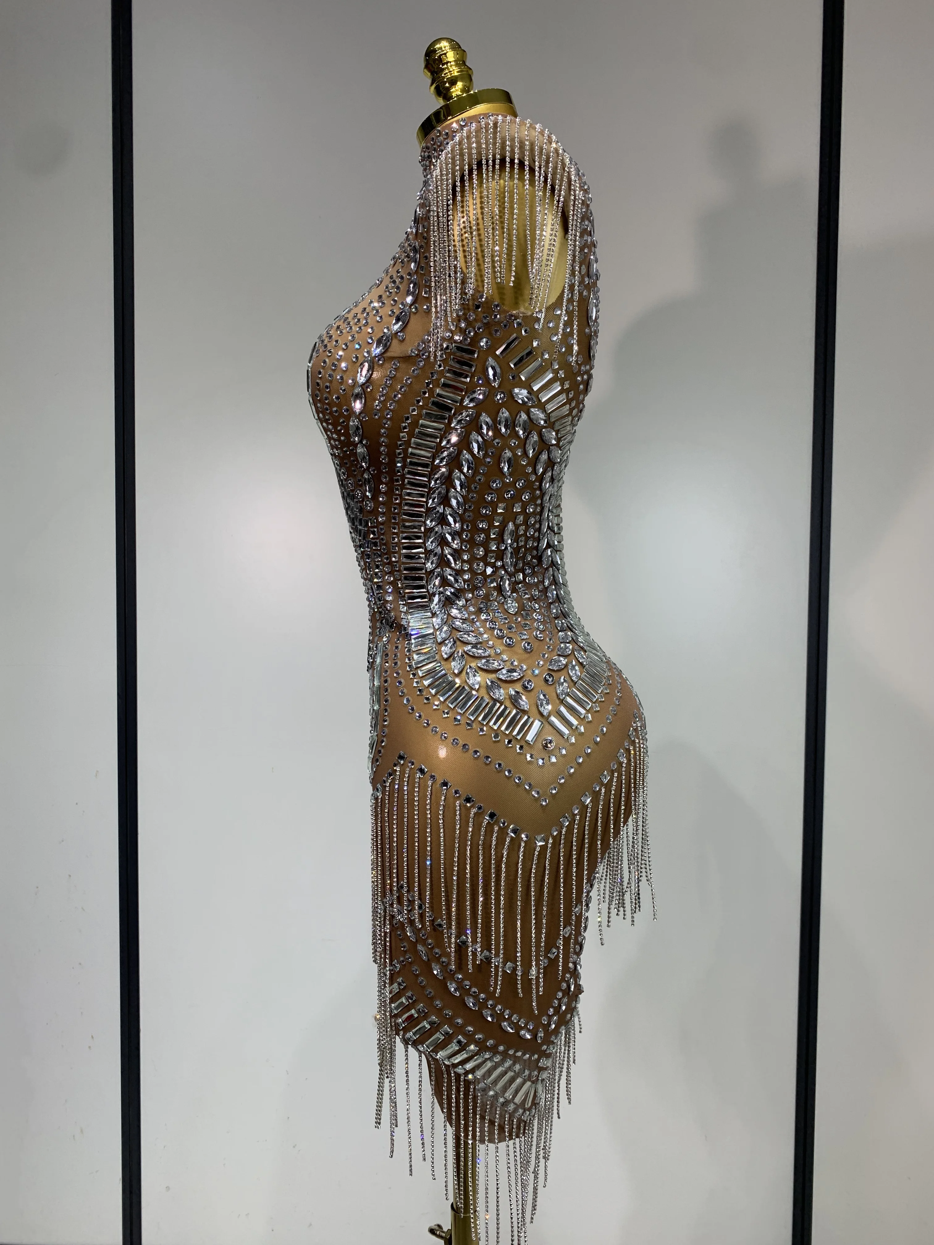Sparkly Rhinestones Evening Dress Singer Stage Costume Luxury Prom Gown Celebrat