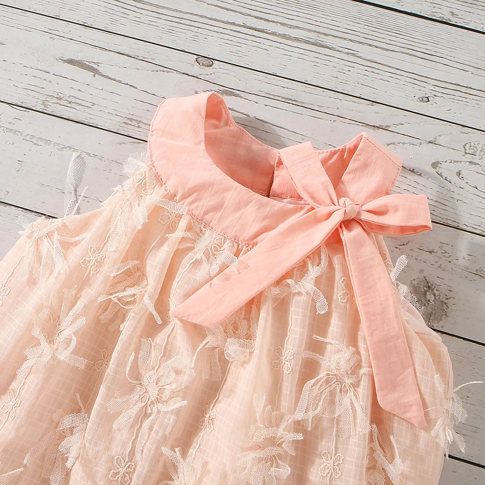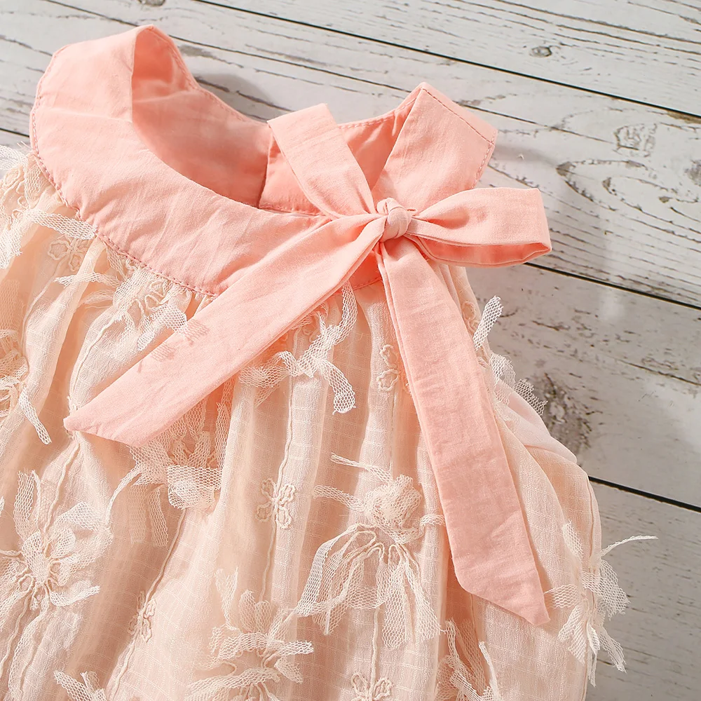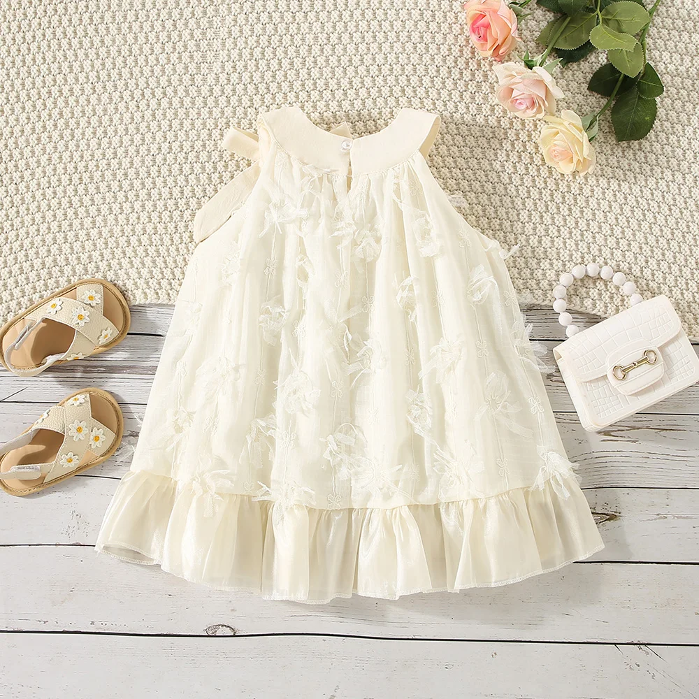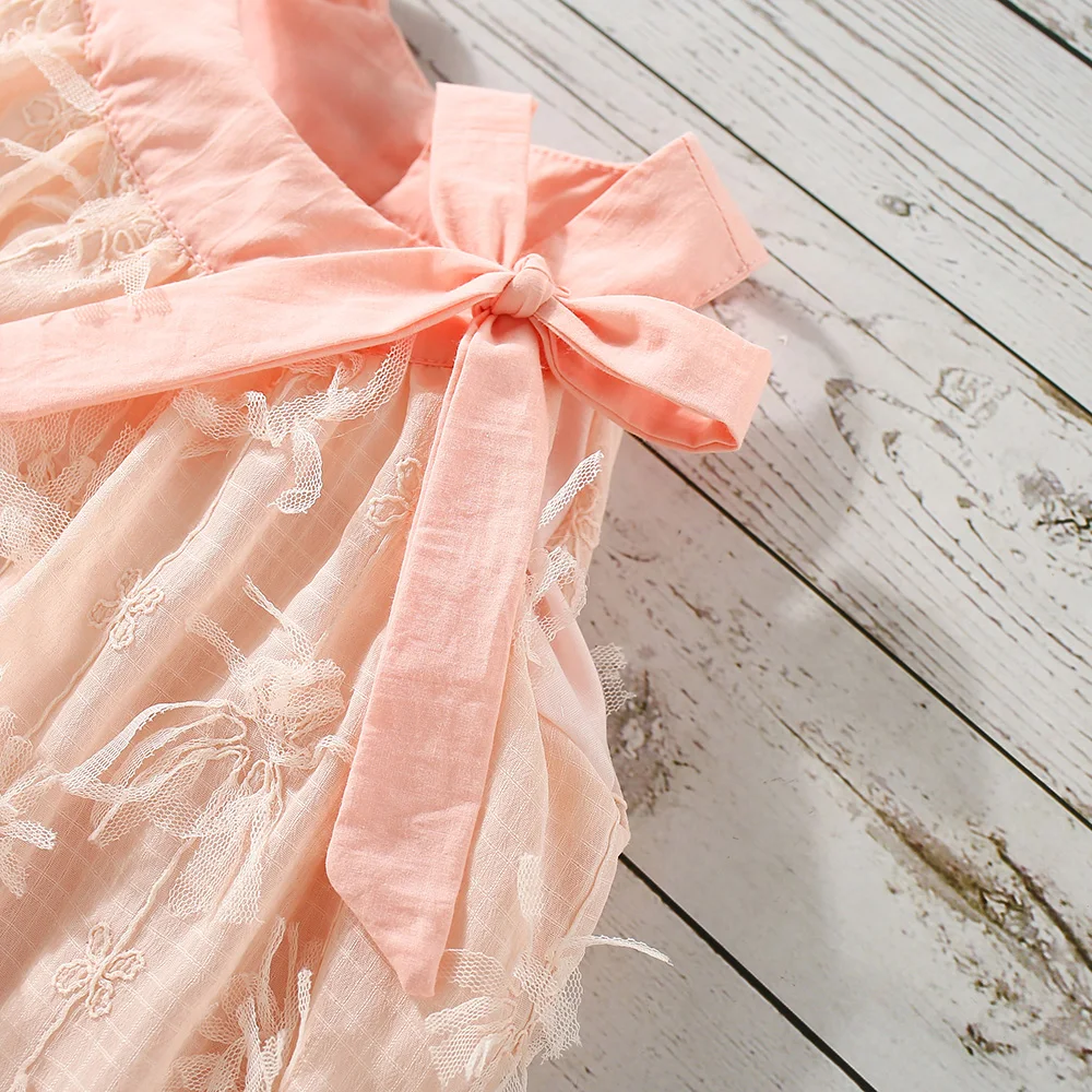 Summer New Baby Girls Dress Halter Floral Ribbon Embellishment Embroidery Ruffle