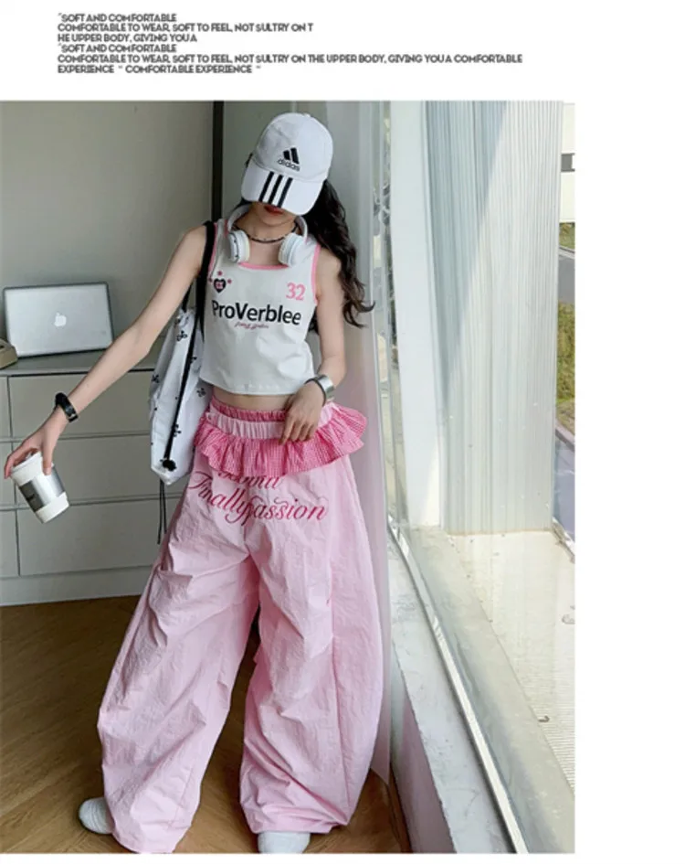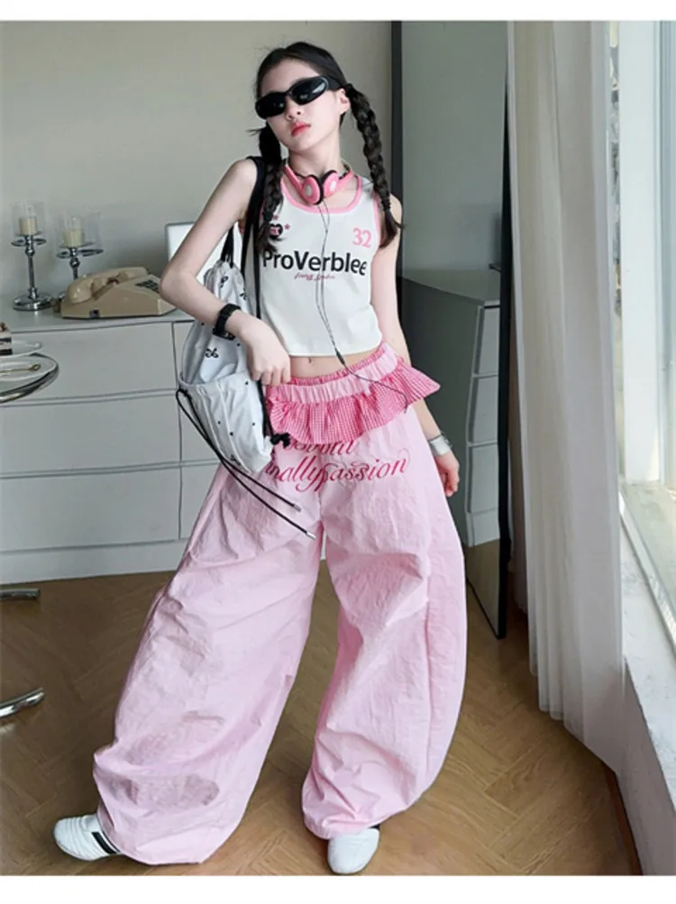 Summer teen girls clothes cotton Tank Top t-shirt Paratrooper Pants junior kid L