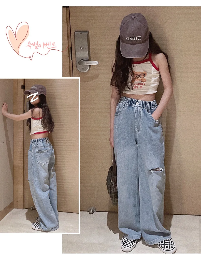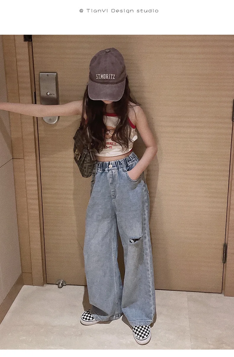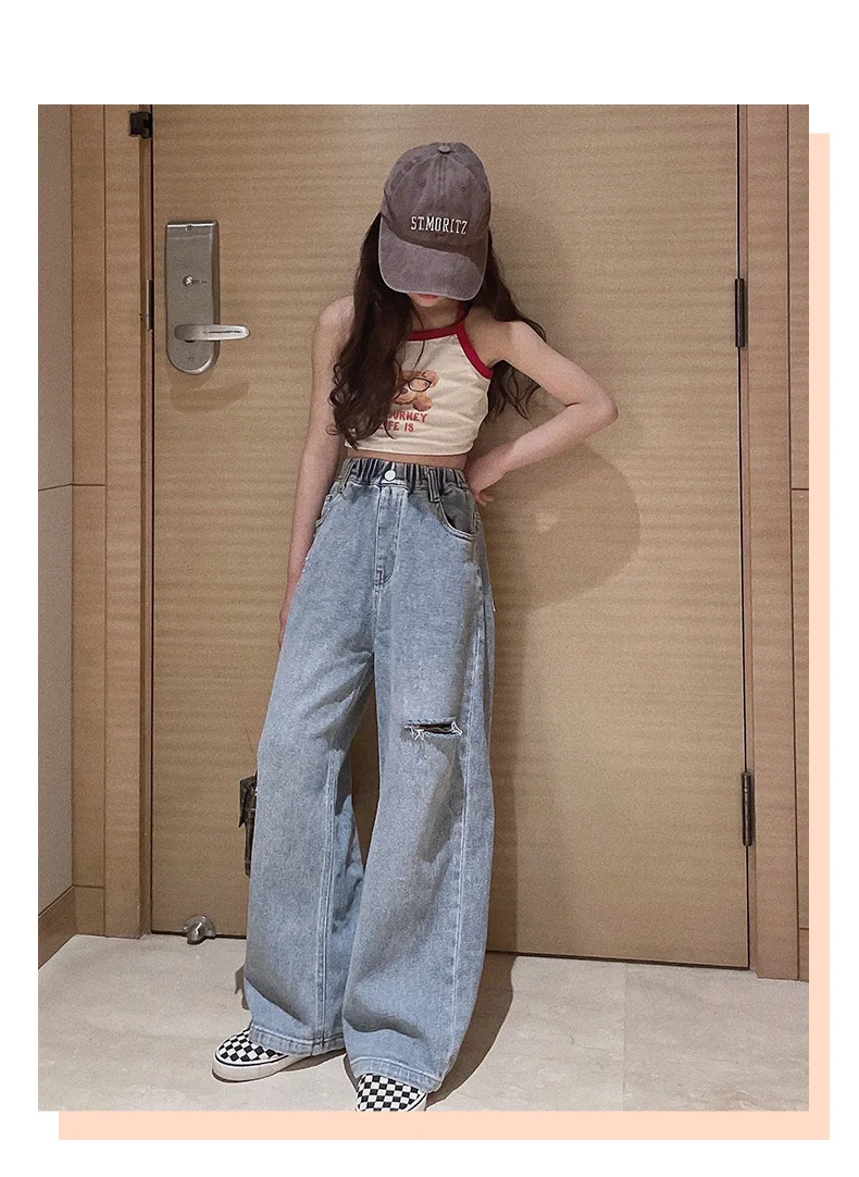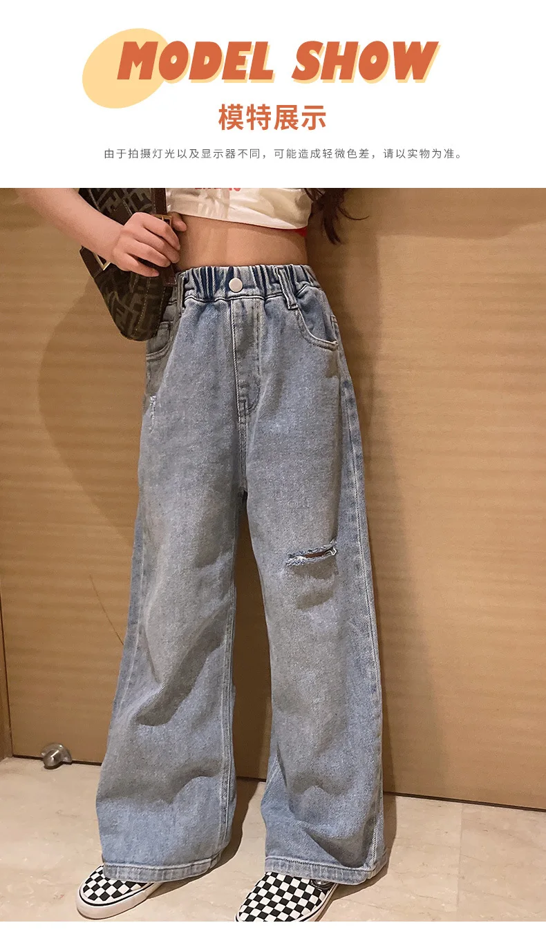 Teenage Girls Jeans 2025 Spring Fall Casual Fashion Loose Ripped Hole Kids Retro