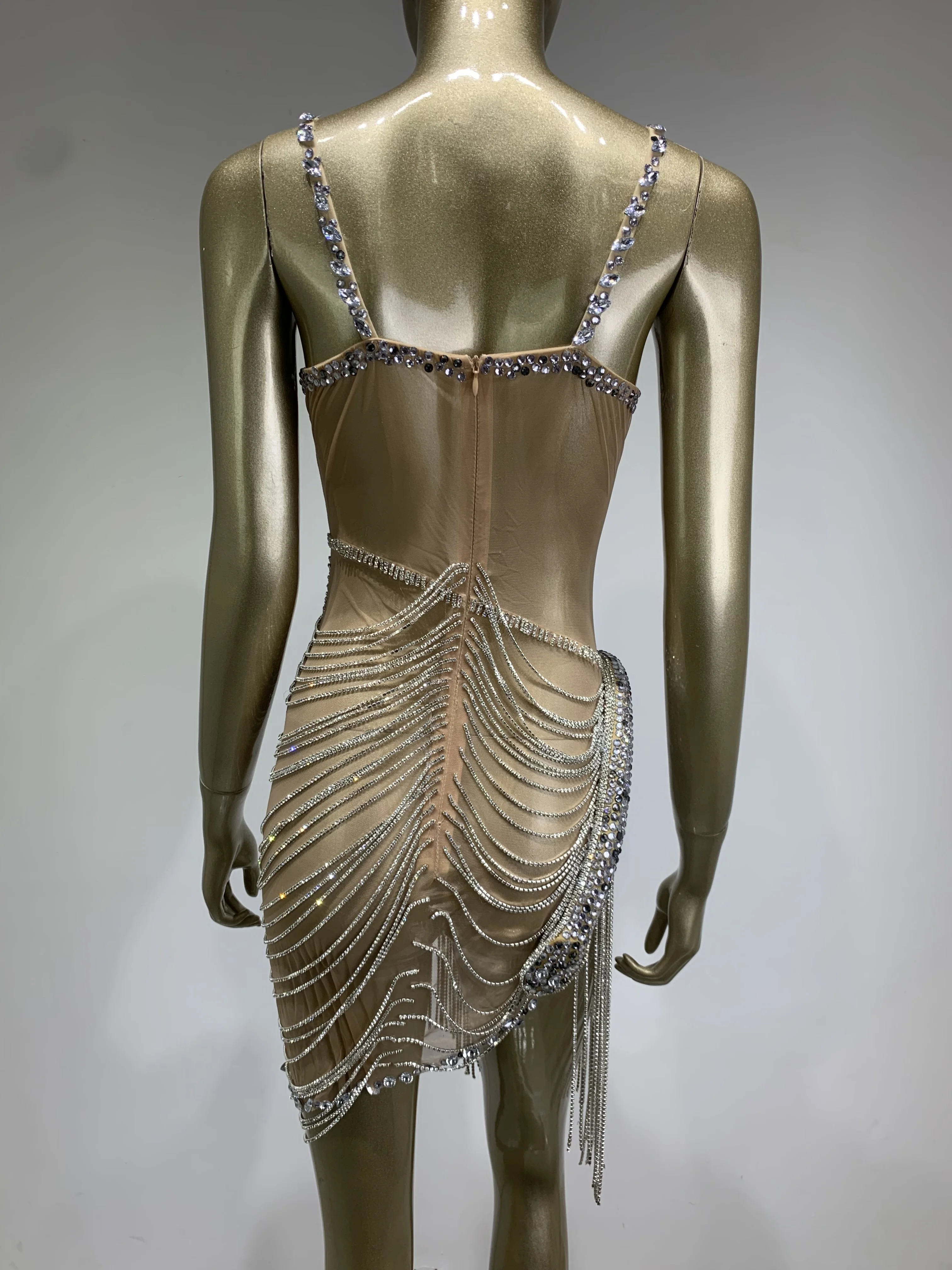 Women Luxury Shiny Crystal Diamond Sling Elastic Sexy Tassel Diamond Chain Minis